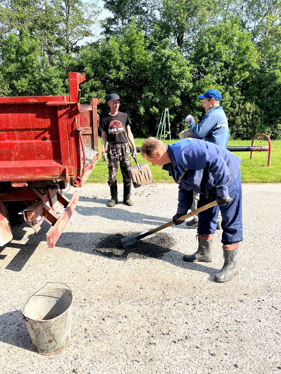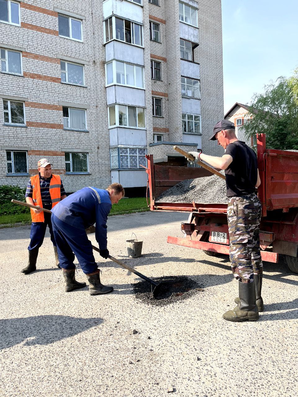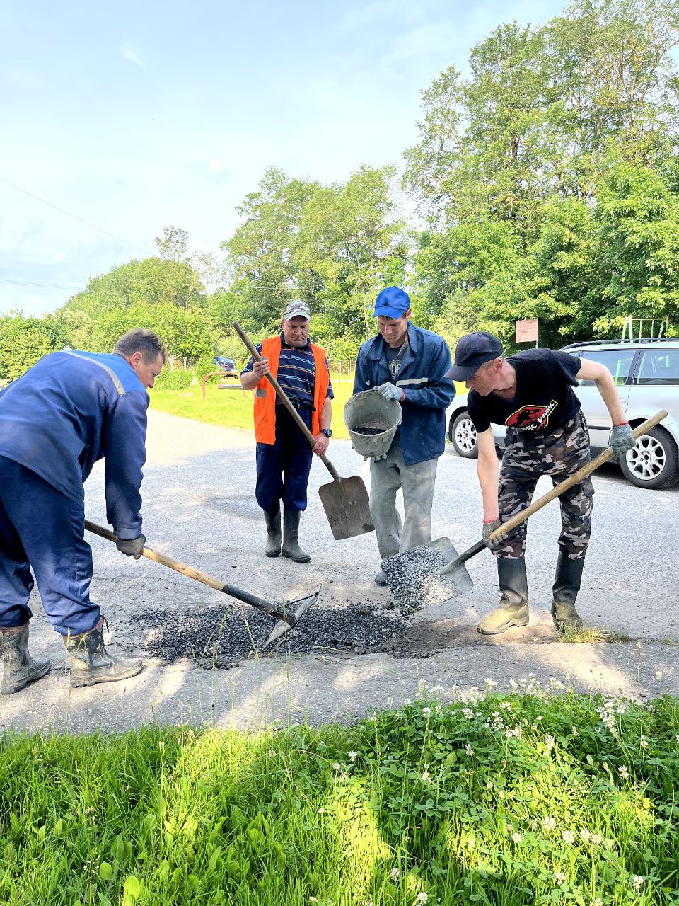 🌿В г. п. Шарковщина продолжаются активные работы по благоустройству и поддержанию чистоты. Работники жилищно-коммунального хозяйства занимаются ремонтом дорожного полотна на улице Халаева, 14.