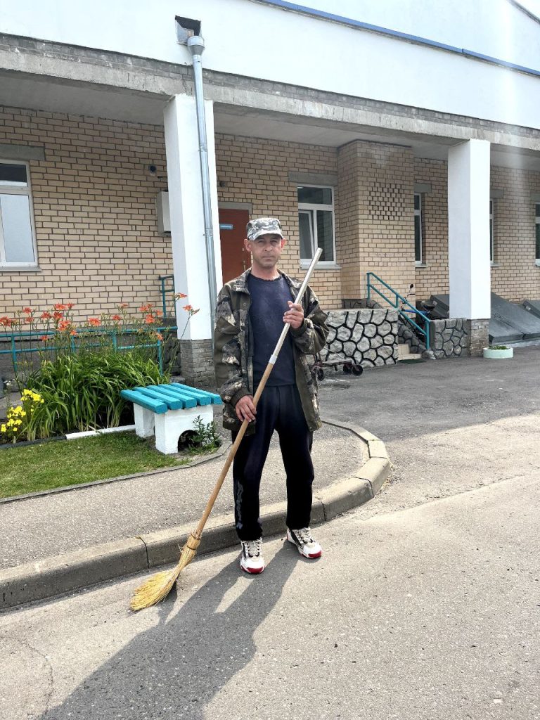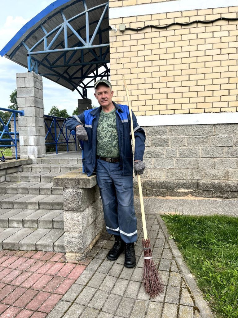 Юрий Заблоцкий: «Работа моментами трудная, всё зависит от погодных условий. Сейчас наступило лето, занимаемся озеленением, тротуары подметаем, обновляем вид подъездов, чтобы все ухоженно выглядело. Приятно работать, когда знаешь, что это на пользу людям. И самому жить в чистом районе куда приятнее».