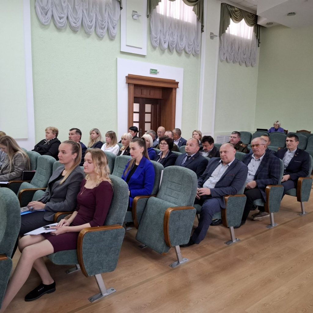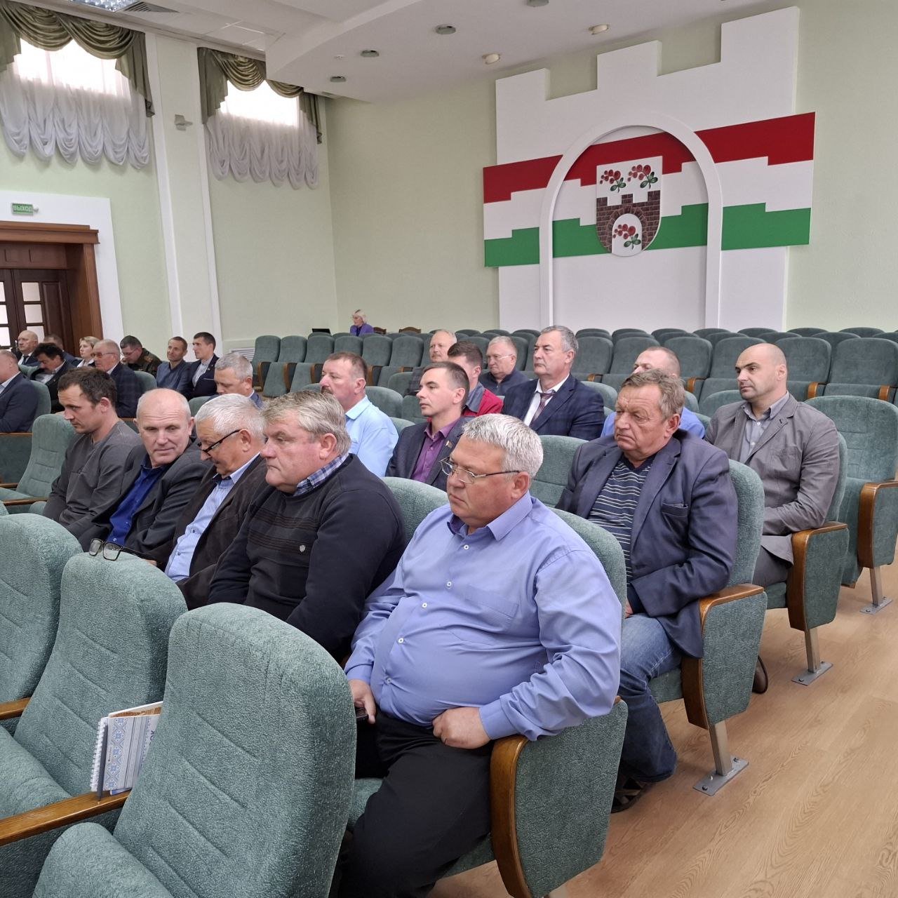 В большом зале райисполкома проходит заседание районного исполнительного комитета под руководством его председателя Сергея Кашмило. На заседание приглашены члены районного исполнительного комитета, начальники отделов и управлений райисполкома, руководители учреждений и организаций района, председатели сельских исполнительных комитетов.