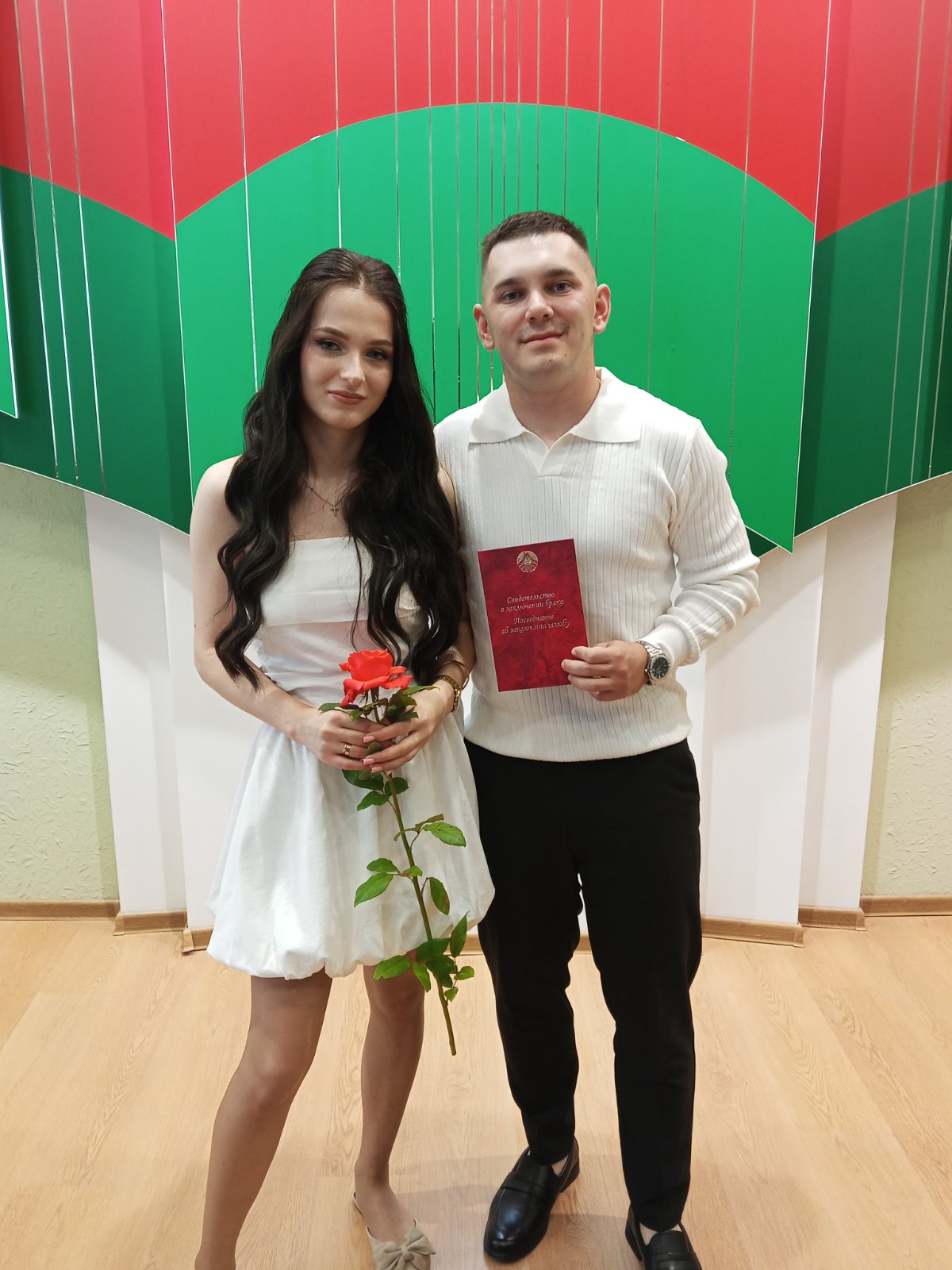 Для торжественной церемонии молодые выбрали символическую дату 09.09.2025. Вячеслав Петюкевич работает старшим инженером в РОЧС, Ирина Смирнова — медсестра выездной бригады скорой помощи. Родные и близкие поздравили молодоженов, пожелав им счастливой семейной жизни.