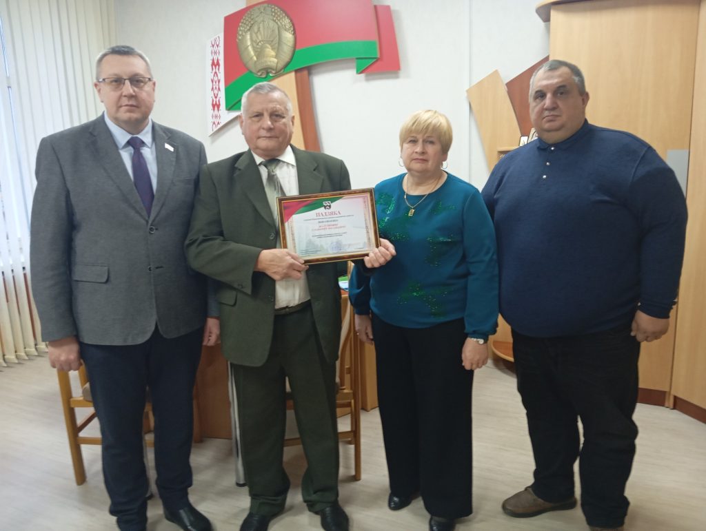 З юбілейнай датай Славаміра Жалудкевіча павіншавалі намеснік старшыні райвыканкама, дэпутат раённага Савета дэпутатаў Юрый Васілеўскі, старшыня ветэранскай арганізацыі РАУС Станіслаў Хашкоўскі і сакратар раённага Савета ветэранаў Маргарыта Баговіч. Па даручэнні кіраўніка раёна Сяргея Кашмілы Юрый Васілеўскі ўручыў юбіляру Падзяку старшыні райвыканкама за ўматгадовую добрасумленную службу, актыўную жыццёвую пазіцыю.