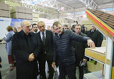 Аляксандр Лукашэнка наведаў прадпрыемства «Кранаспан ОСБ», азнаёміўся з сучаснымі тэхналагічнымі працэсамі вытворчасці арыентавана-стружкавых пліт і выстаўкай вырабляемай прадукцыі, адказаў на пытанні прадстаўнікоў працоўных калектываў прадпрыемстваў кампаніі «Кранаспан».