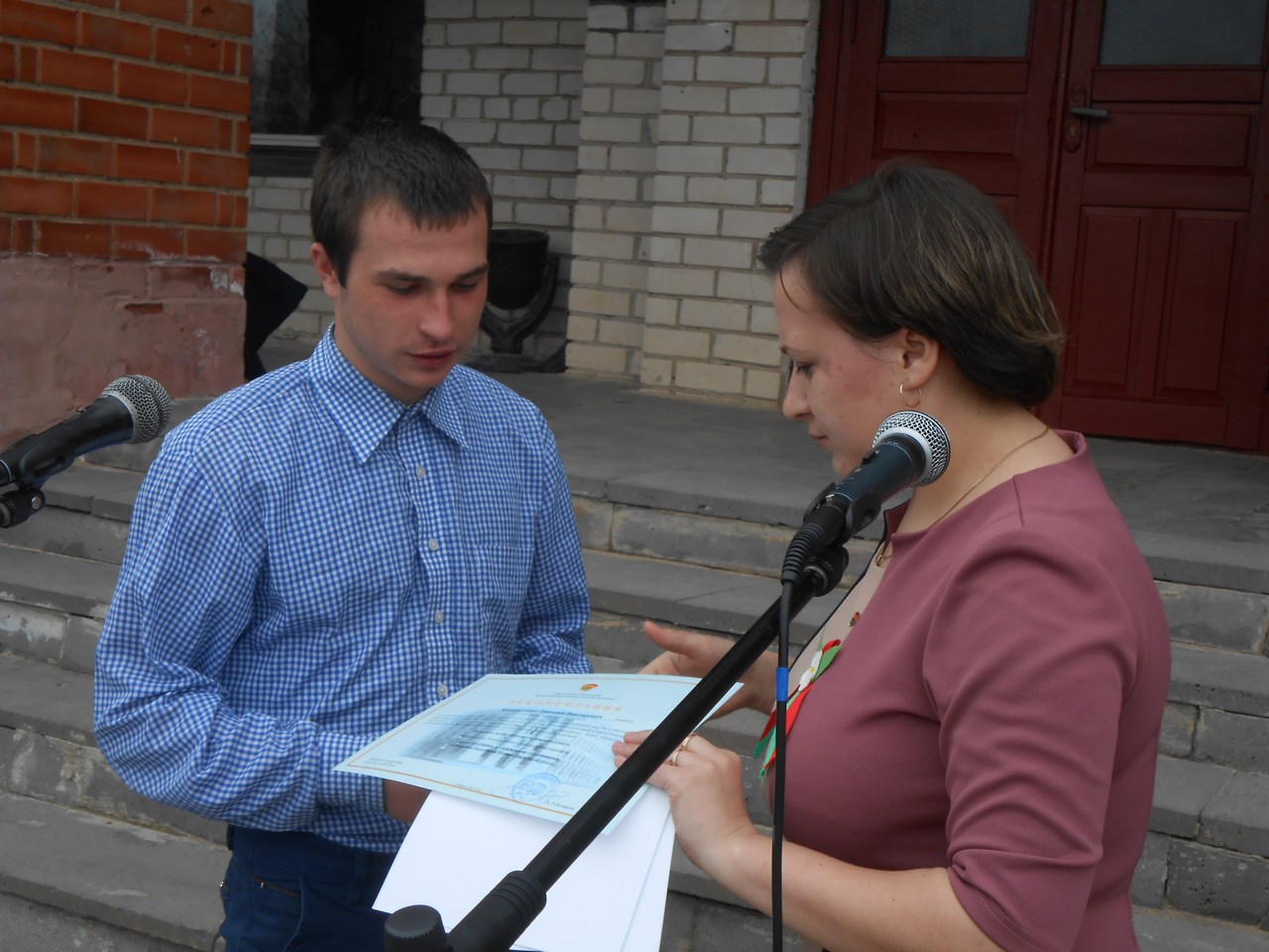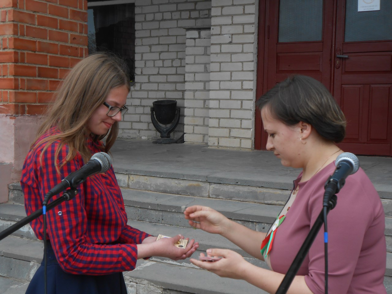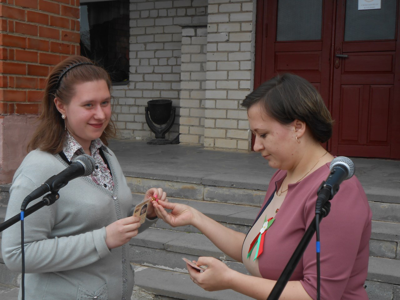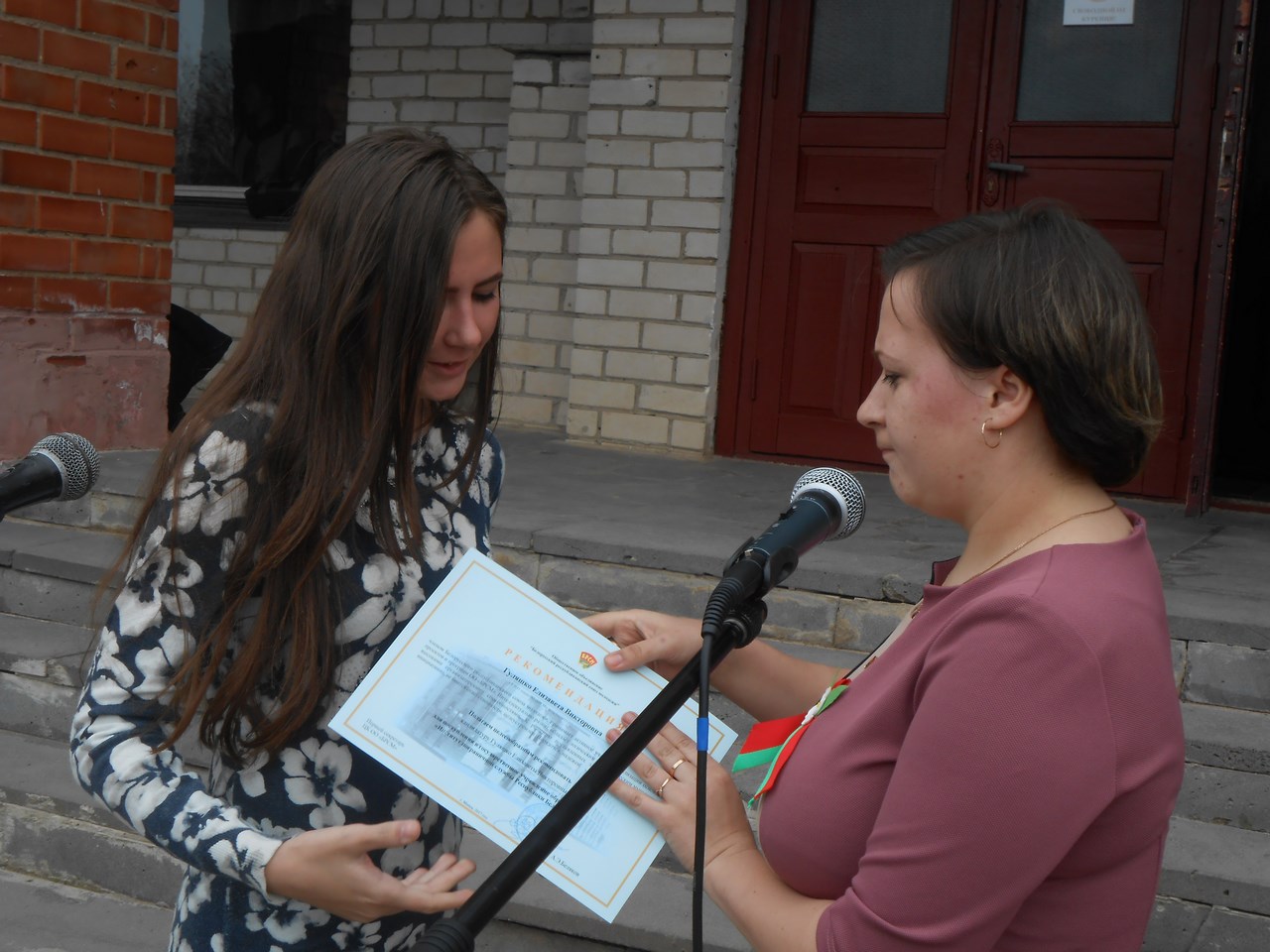 К поздравлениям присоединилась Анна Зайцева, которая вручила значки и членские билеты БРСМ, а также выпускникам школы рекомендации общественного объединения «БРСМ» для поступления в высшее учебное заведение.