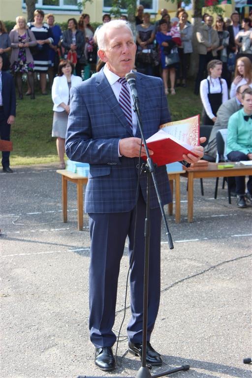 — Дарагія дзеці, — звярнуўся да прысутных дырэктар школы Сяргей Рафаілавіч Ганебны, — сёння для вас пачынаецца новы навучальны год. Мы, настаўнікі, вельмі хочам, каб вы на занятках праявілі сваю настойлівасць, уменні, працавітасць у авалоданні школьнымі прадметамі. На працягу ўсяго навучальнага года вас чакаюць цікавыя і пазнавальныя ўрокі, захапляльныя заняткі на любы густ.