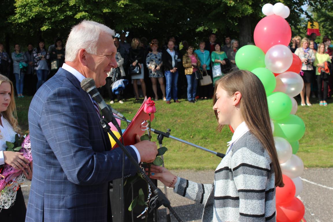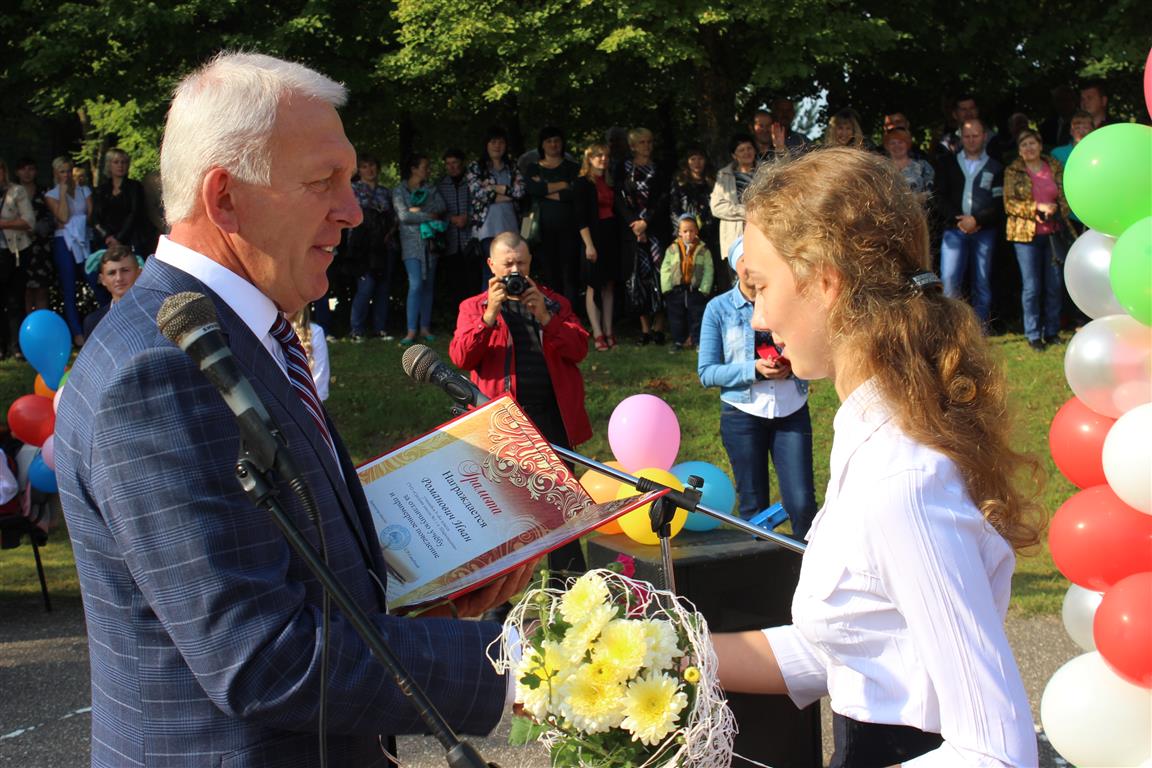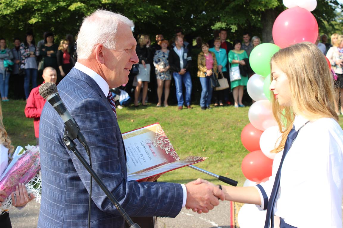 Старшыня Шаркаўшчынскага раённага выканаўчага камітэта Дзмітрый Міхайлавіч Ламака, звяртаючыся да школьнікаў, пажадаў ім мэтанакіравана напаўняць свой багаж ведамі, каб у хуткім будучым стаць дастойнымі грамадзянамі нашай краіны. Кіраўнік раёна ўручыў школе падарачны сертыфікат на атрыманне сталовага, кухоннага посуду і інвентару.