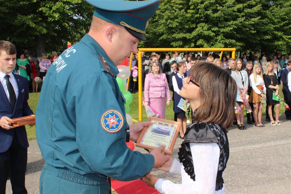 І вось надышоў самы хвалюючы момант святочнага мерапрыемства. Вучань 11 класа Вадзім Скопец і першакласніца Паліна Ламака залівістым і мелагучным званком абвясцілі пра пачатак новага навучальнага года.