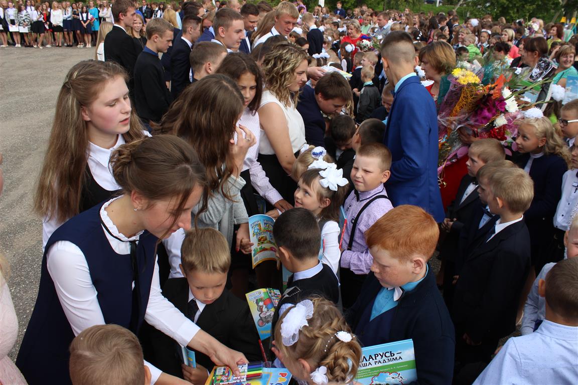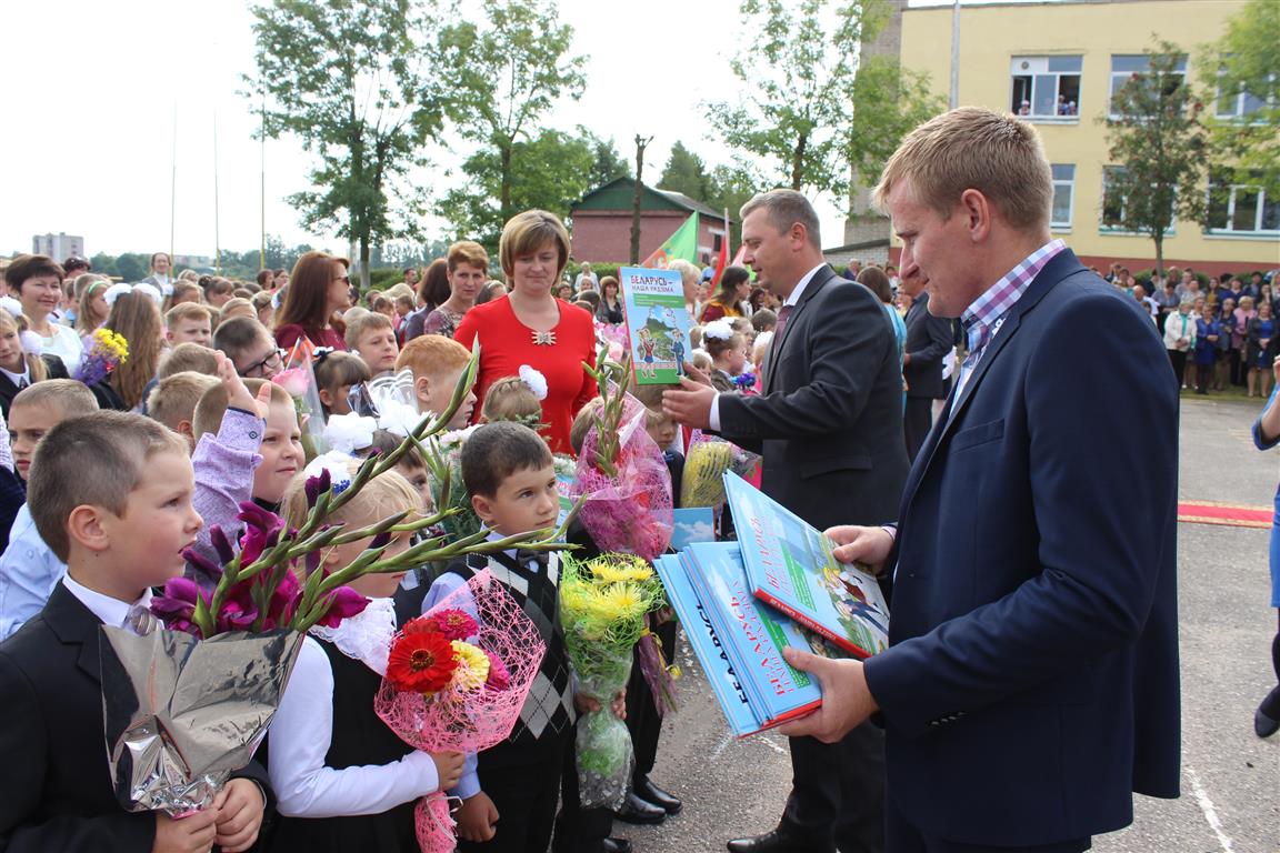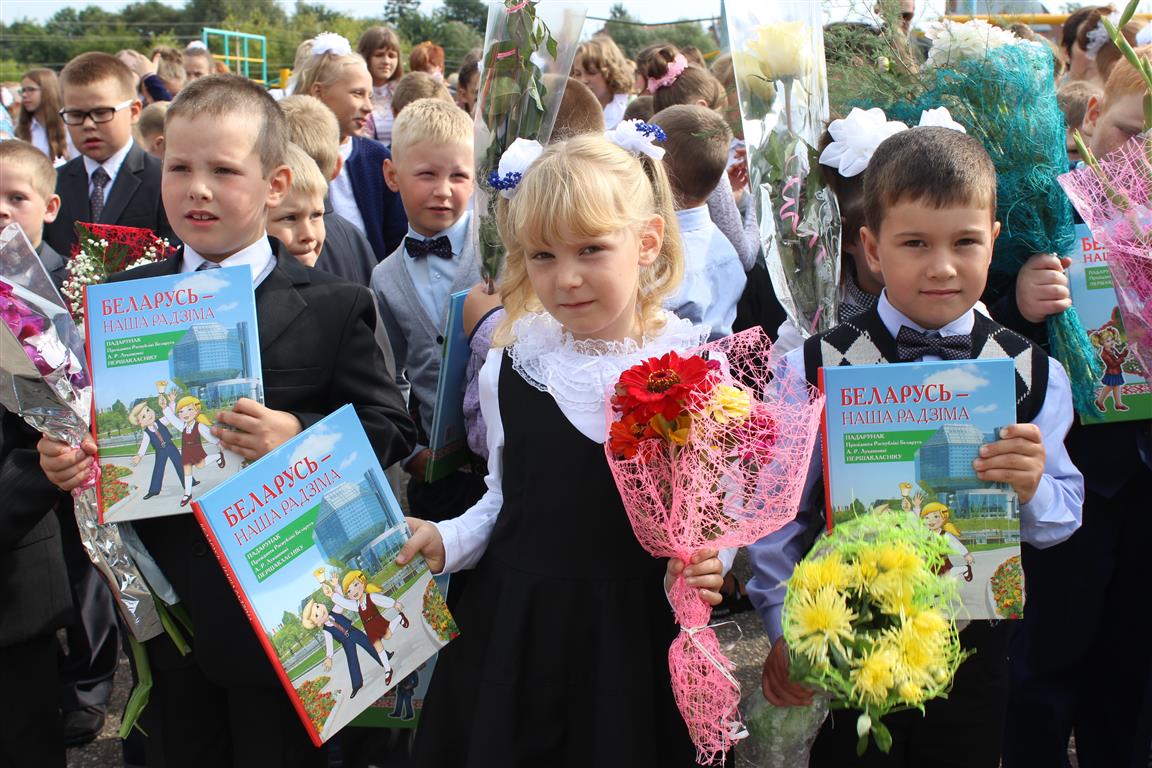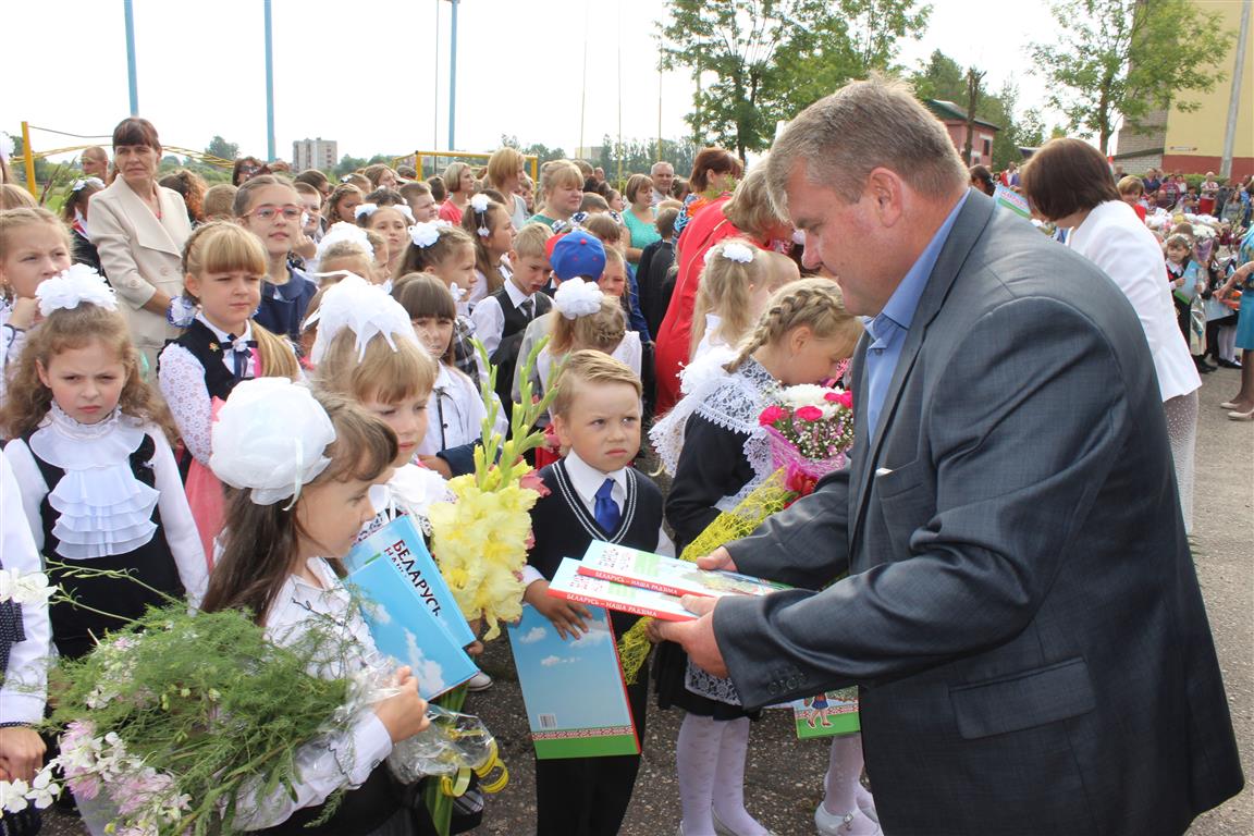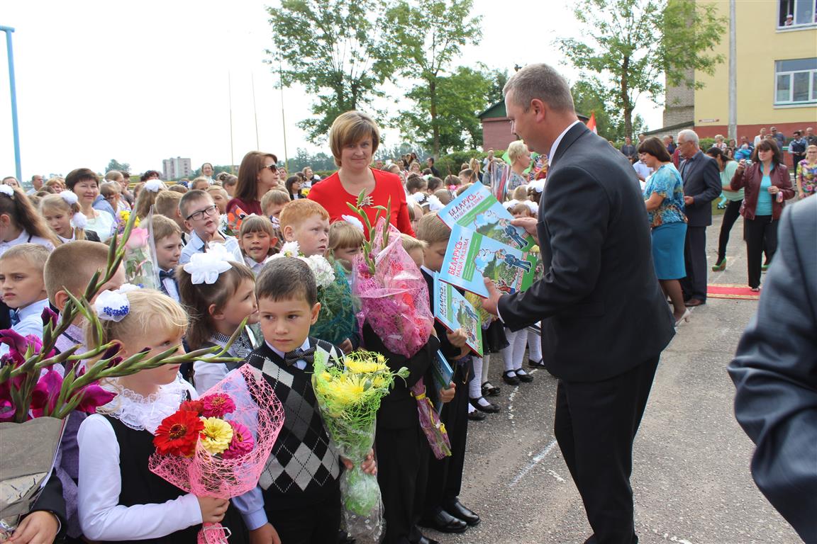 Сёлета ў сярэдняй школе № 1 будуць навучацца 659 дзяцей. Упершыню сядуць за парты 69 хлопчыкаў і дзяўчынак. Менавіта ім, першакласнікам, старшыня райвыканкама, запрошаныя госці і настаўнікі ўручылі падарунак ад Прэзідэнта нашай краіны А. Р. Лукашэнкі кнігу “Беларуь — мая Радзіма”.