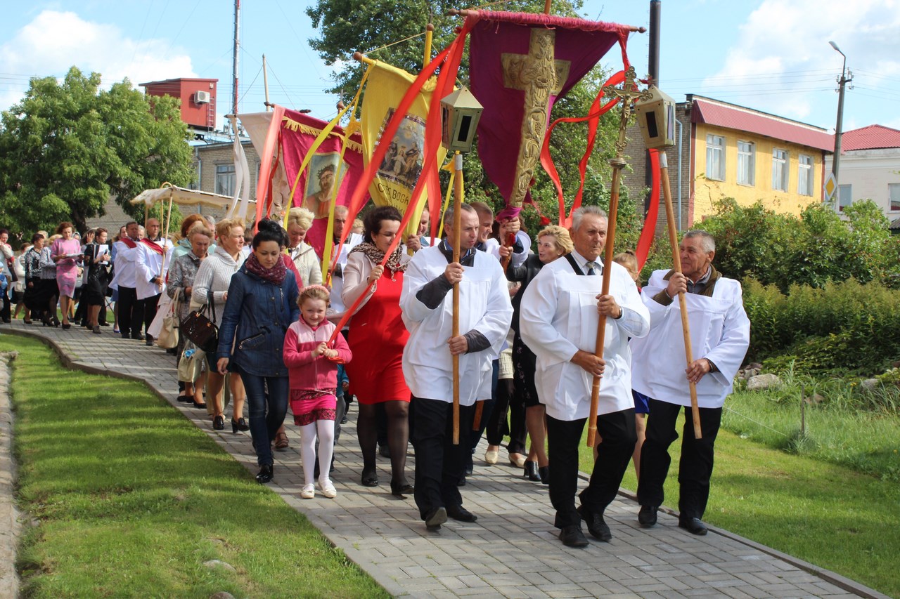 Пасля выканання гімна “Магутны Божа” вернікі накіраваліся ў касцёл.