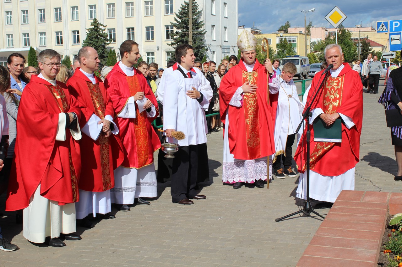 Затым усе святары і вернікі рушылі працэсіяй на месца, дзе калісьці быў пабудаваны, а затым знішчаны каталіцкі храм — каля сучаснага будынка Белаграпрамбанка.