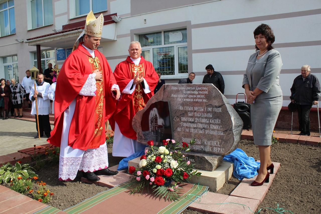 Сёння, дзякуючы Пану Богу, намаганням і ксяндза Крыштафа пры супрацоўніцтве з уладамі раёна, усім парафіянам, якія ўнеслі свой фінансавы ўклад, у прысутнасці ганаровага госця біскупа Віцебскай дыяцэзіі Алега Буткевіча быў адкрыты памятны знак як сімвал незнішчальнай памяці пра святыню і ўсіх тых, хто яе будаваў і маліўся ў ёй, праслаўляючы Бога.
