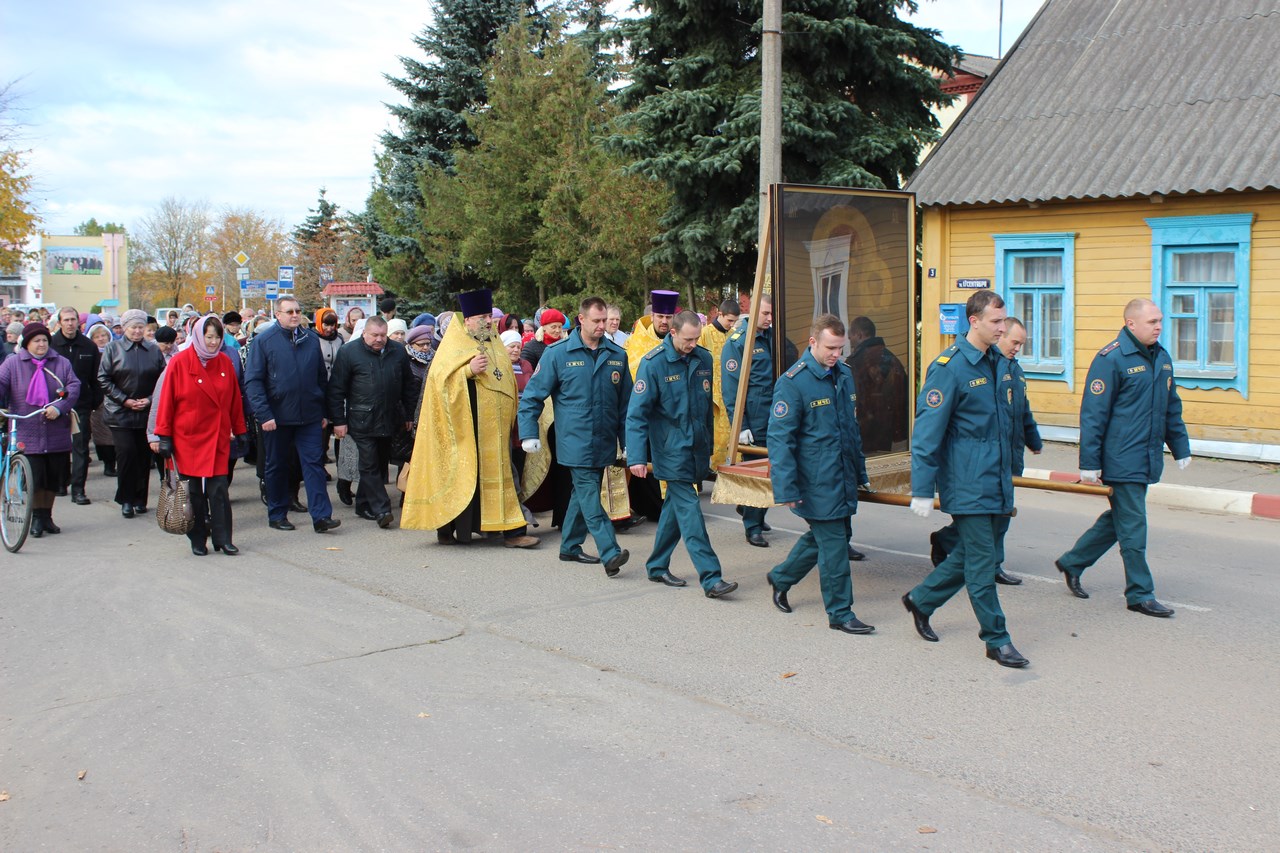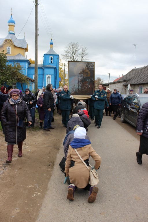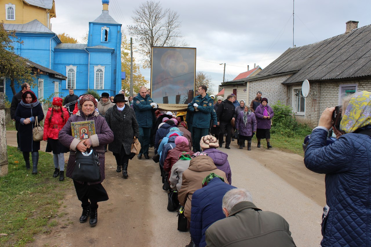 На наступны дзень у Свята-Успенскай царкве пачалася ранішняя літургія. Затым вернікі з прывезенымі святынямі Хрэсным ходам пакрочылі па вуліцах гарадскога пасёлка да помніка свяшчэннамучаніку Канстанціну Жданаву, дзе адбылася малітва. Далей Хрэсны ход прадоўжыўся па вуліцах 17 верасня і Чырвонаармейскай. Каля паклоннага крыжа, у скверы ДРБУ-131, вернікі развіталіся са святынямі, якія потым накіраваліся ў Глыбокае.
