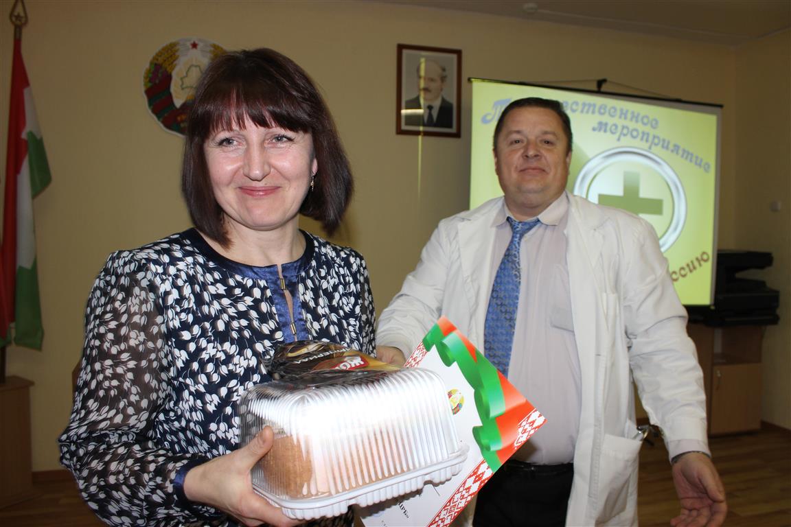 У канцы мерапрыемства галоўны ўрач уручыў прадстаўнікам аддзяленняў ЦРБ салодкія падарункі.