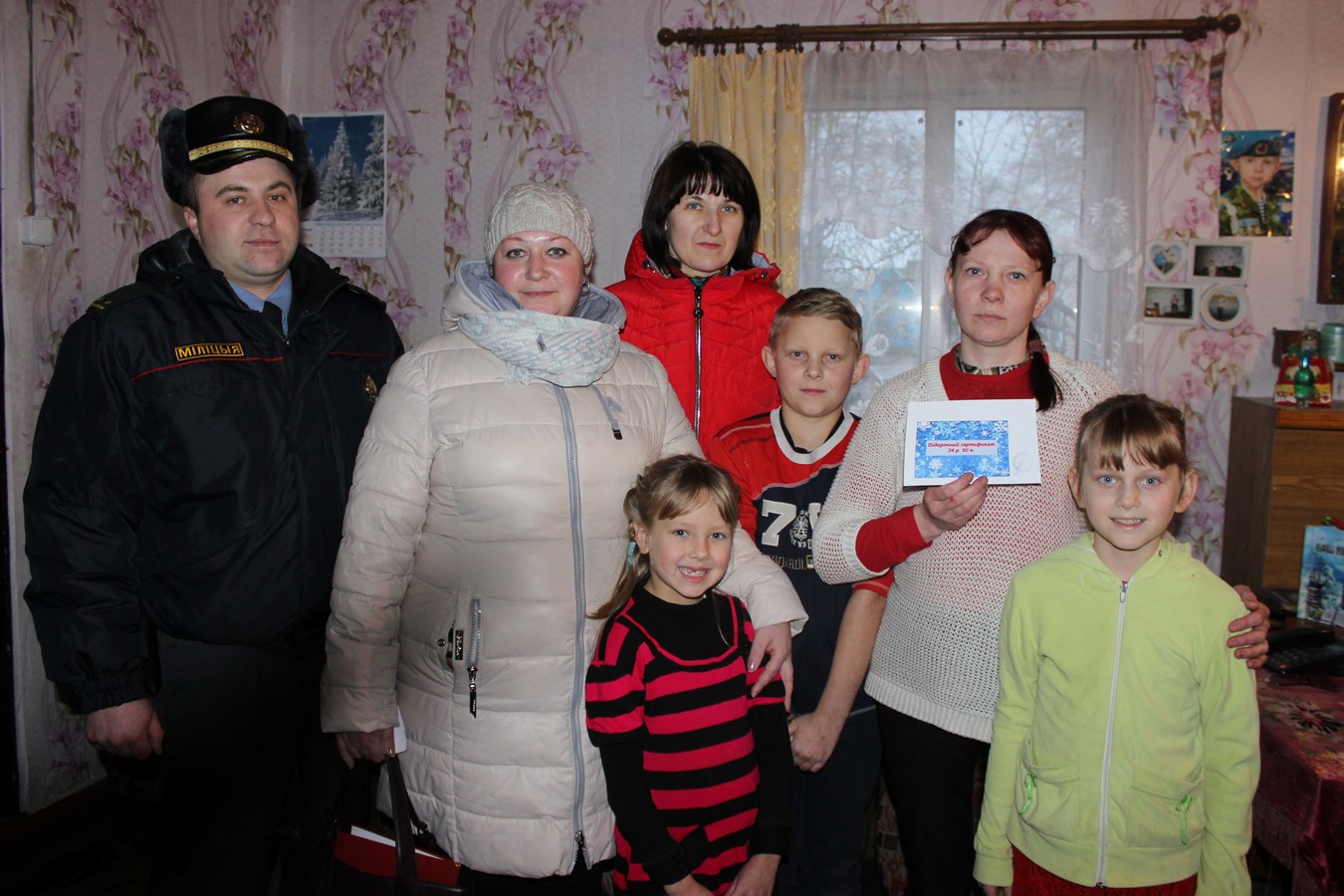 Сумесную дабрачынную акцыю «Нашы дзеці» напярэдадні Раства правялі прадстаўнікі Шаркаўшчынскай раённай арганізацыі “Беларускі фонд міру”, камісіі па справах непаўналетніх райвыканкама, раённай арганізацыі “Белая Русь” разам з добраахвотнымі дружынамі раёна. У межах акцыі дзве шматдзетныя сям’і з Шаркаўшчынскага раёна атрымалі падаруначныя сертыфікаты на набыццё тавараў ў аддзяленнях паштовай сувязі “Белпошта”. З навагоднімі святамі і Раством бацькоў і іх дзяцей павіншавалі Іна Мар’янаўна Шынкевіч і Марыя Пратасьеўна Фёдарава, якія на тэрыторыі раёна ўзначальваюць арганізацыі “Беларускі фонд міру” і “Белая Русь”, і ўчастковы інспектар міліцыі Шаркаўшчынскага РАУС Андрэй Мікалаевіч Усцінаў. Падаруначныя сертыфікаты ад “Беларускага фонду міру” яны ўручылі сям’і Гуйда з Шаркаўшчыны і сям’і Дарашчонкаў з аграгарадка Пялікі. Алена Леанідаўна Гуйда – маці чатырох дзяцей. Старэйшая дачка Сняжана ўжо студэнтка, трое малодшых дзяцей: Кірыл, Валерыя і Паліна яшчэ школьнікі, вучацца ў Шаркаўшчынскай сярэдняй школе № 2. У сям’і Святланы Аркадзьеўны і Мікалая Мікалаевіча Дарашчонкаў выхоўваюцца трое дзяцей, у тым ліку і хлопчык, які мае інваліднасць. Старэйшаму Мікіце хутка споўніцца 12 гадоў, Паўлу — сем. Самая малодшая ў шматдзетнай сям’і – трохмесячная дачушка Ксюша. Напачатку Новага года падаруначныя сертыфікаты сталі для шматдзетных сем’яў прыемным падарункам.