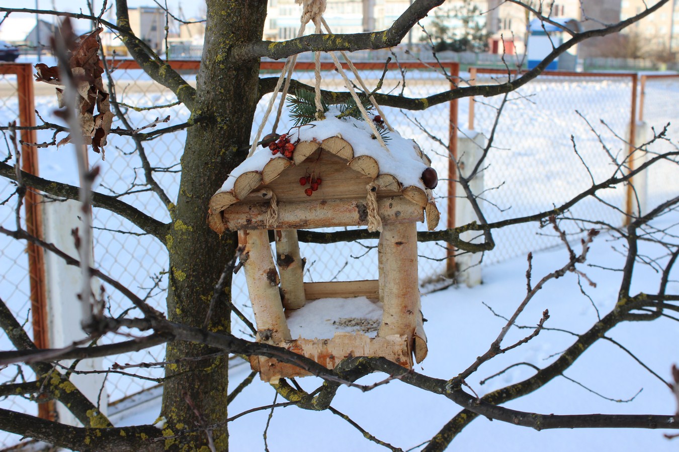 -Перазімаваць птушкам гэтай зімой дапамагаюць нашы юныя выхаванцы, якія разам з бацькамі змайстравалі і прынеслі ў дашкольную ўстанову вельмі прыгожыя і практычныя, драўляныя домікі для птушак. Выхавацелі разам з дзецьмі разхвесілі іх на тэрыторыя дзіцячага садка і гэтай зімой наш двор стаў сапраўдным невялікім горадам для птушак. Лепшыя работы для ўдзелу ў нашай акцыі ў дзіцячы сад прынеслі Дзіма Каленцьеў, Ульяна Касевіч, Арцём Лук’янёнак, Аня Пальчэх, Ягор Цітовіч, Аляксей Падгальны, Ульяна Цімафеева, Крысціна Лук’янёнак, Іван Віршута, Аляксандр Бабоўскі і вучні 1 “А” класа Глеб Крупко і Варвара Юдаш. Вялікі дзякуй бацькам гэтых дзяцей, якія нас заўсёды падтрымліваюць і дапамагаюць нашаму педагагічнаму калектыву ўвасобіць у жыццё самыя цікавыя акцыі і праекты. А зараз дзеці з задавальненнем прыносяць корм і насыпаюць яго ў новыя кармушкі, каб потым праз вакно назіраць за птушкамі, якія да нас прылятаюць. Карміць пярнатых сяброў хлопчыкам і дзяўчынкам вельмі падабаецца. Удзел у такіх акцыях развівае дабрыню, пачуццё адказнасці, а яшчэ, вывучаючы розныя віды птушак, дзеці знаёмяцца з прыродай роднага краю. Нашы маленькія выхаванцы зараз добра памятаюць аб тым , як важна падтрымаць птушак зімой. Проста і вельмі важна.