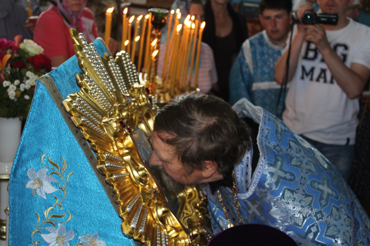 А палове шостай гадзіны вечара ў царкве пачаўся малебен і пакланенне святыні. Храм не зачыняў свае дзверы да позняга часу, бо вельмі шмат людзей прыйшло ў той дзень, каб дакрануцца да іконы Прасвятой Багародзіцы, у думках папрасіць у Найсвяцейшай Дзевы Марыі заступніцтва, дапамогі і падтрымкі.