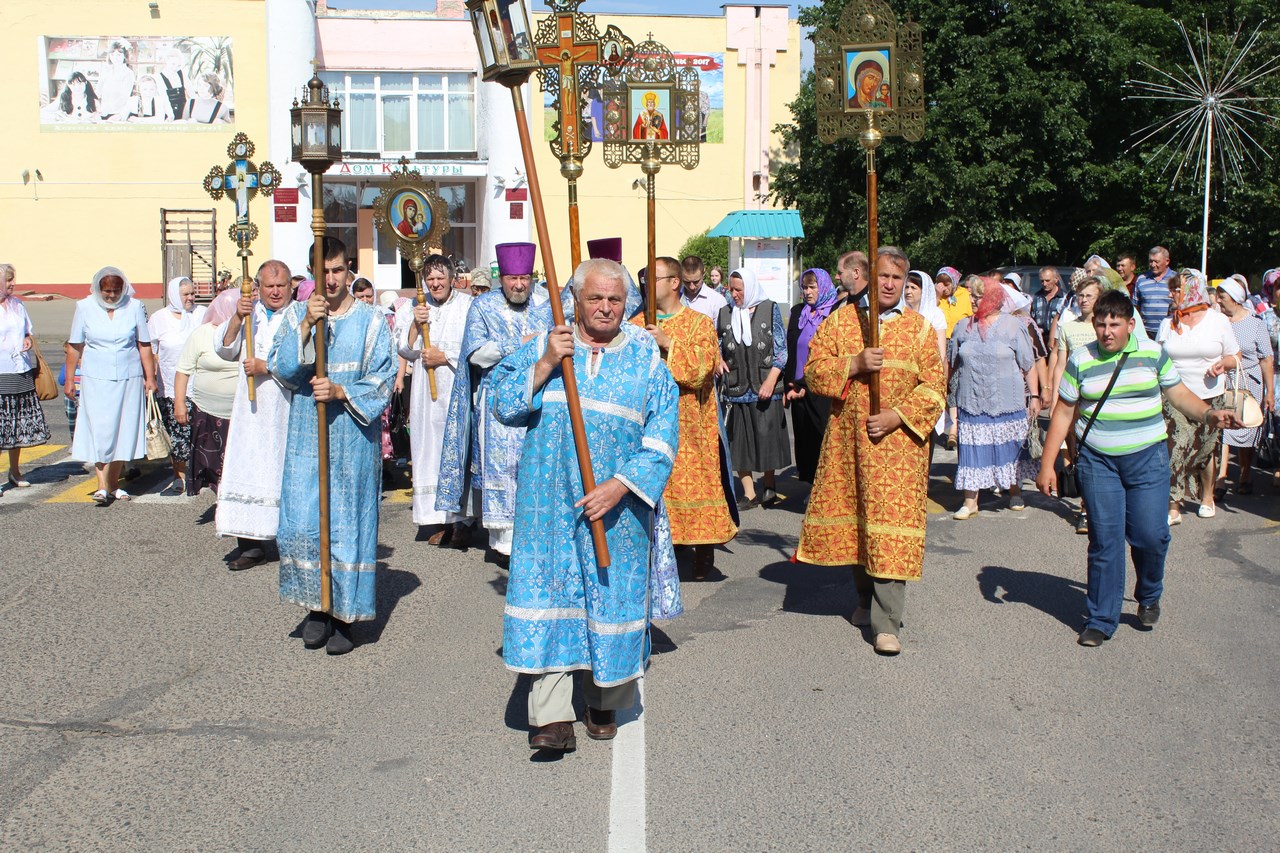 Раніцай наступнага дня ў царкве праводзілася літургія, малебен, а потым пачаўся Хрэсны ход з Жыровіцкай іконай Прасвятой Багародзіцы праз цэнтр гарадскога пасёлка да помніка свяшчэннамучаніку Канстанціну Жданаву. Мноства шаркаўчан і гасцей раённага цэнтра пад промнямі цёплага летняга сонца крочылі за іконай Найсвяцейшай Дзевы Марыі. Пакрысе да іх далучаліся, выходзячы са сваіх дамоў, жыхары гарадскога пасёлка. Многія гараджане віталі святыню на плошчах і вуліцах Шаркаўшчыны.