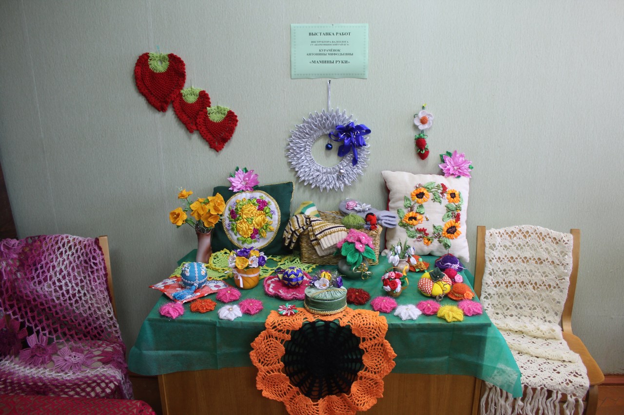 14 октября небольшое праздничное мероприятие прошло в районном центре гигиены и эпидемиологии. В одном из кабинетов райЦГЭ разместили выставку декоративно-прикладного творчества «Мамины руки», которую подготовила инструктор-валеолог Антонина Мифодьевна Кураченок. Работы у мастерицы получились яркими, красочными, душевными. Антонина Мифодьевна продемонстрировала свои творческие способности, фантазию и воображение. Выставка получилась поистине восхитительной и радовала всех окружающих.