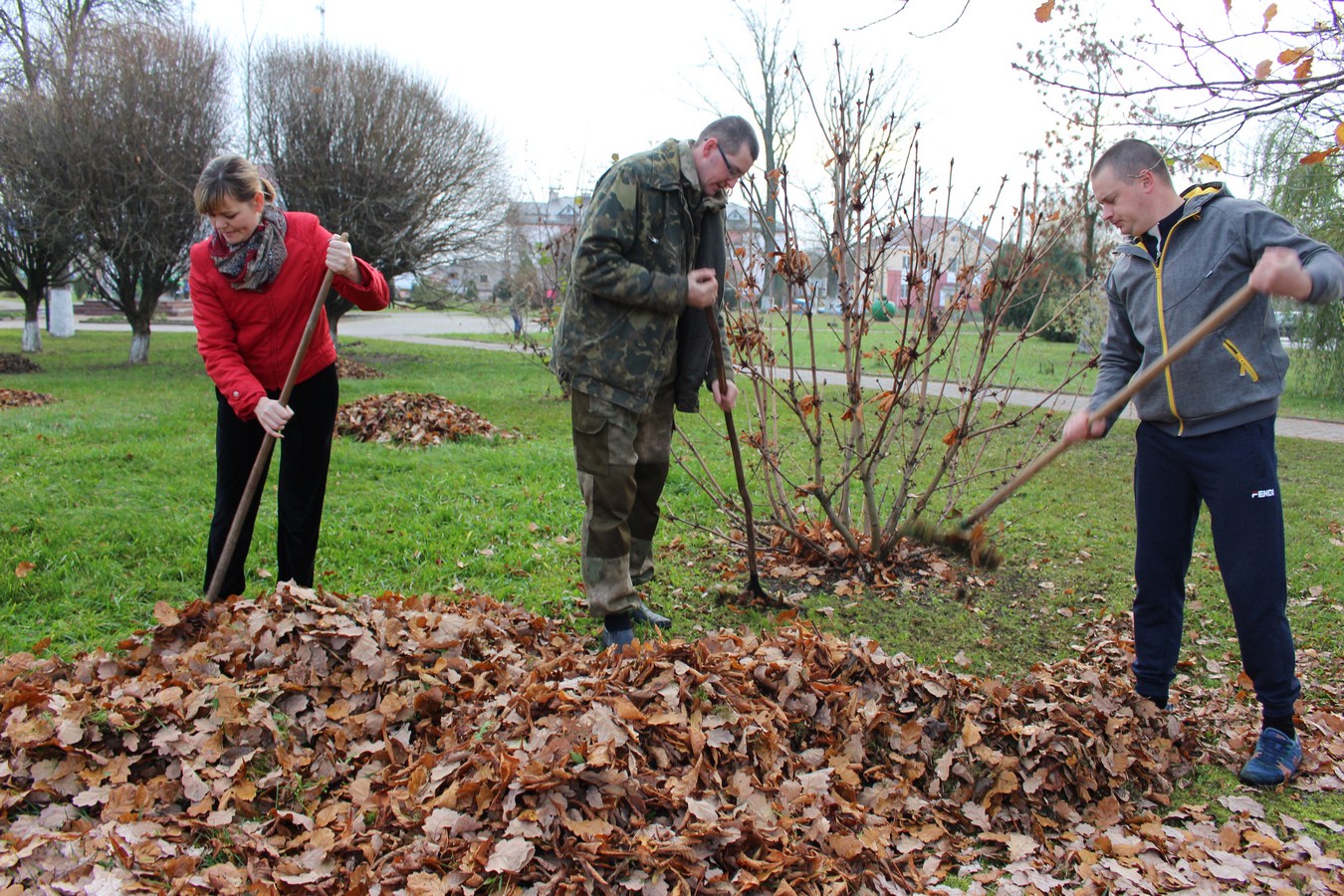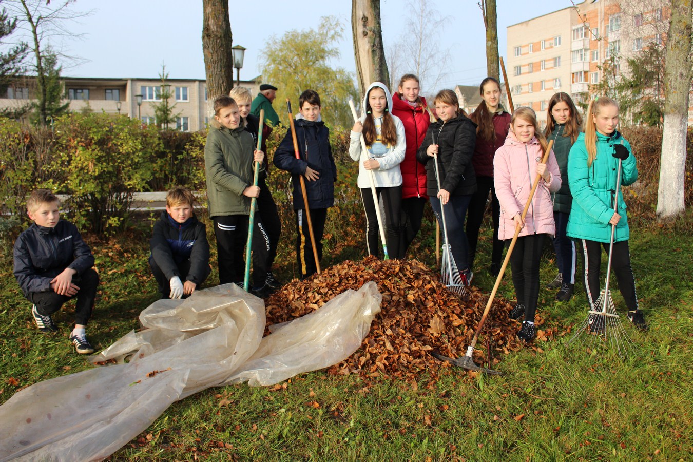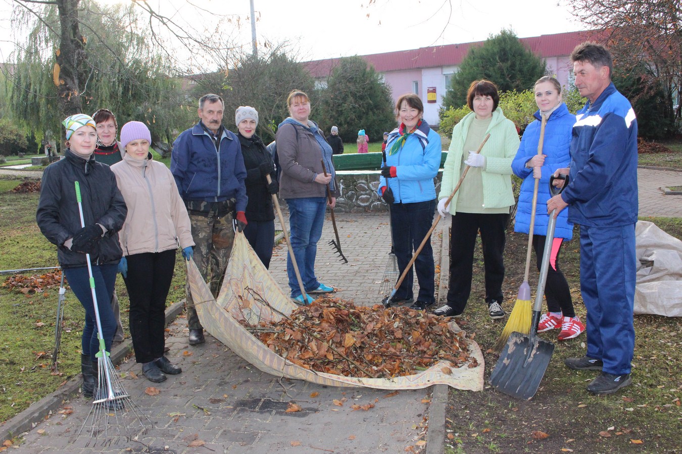 С самого утра жители горпоселка и района уже активно трудились на уборке опавшей листвы в парках и скверах, наводили порядок на закрепленных и прилегающих территориях.