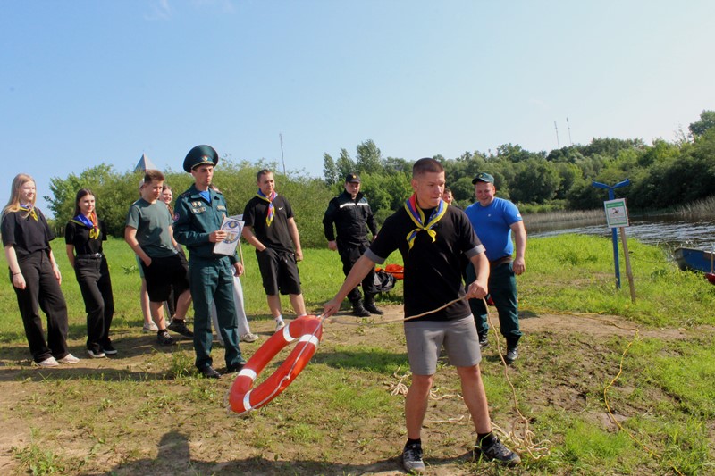 Затем началась практическая часть. Работники РОЧС показали, как правильно бросать спасательный круг, как помочь тонущему человеку, не подвергая себя опасности.