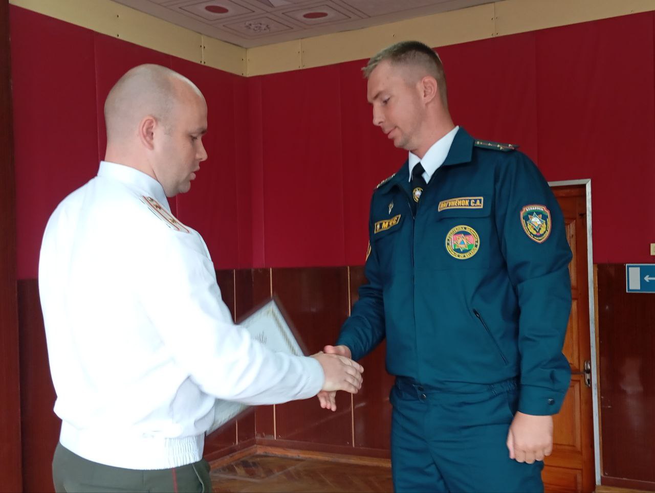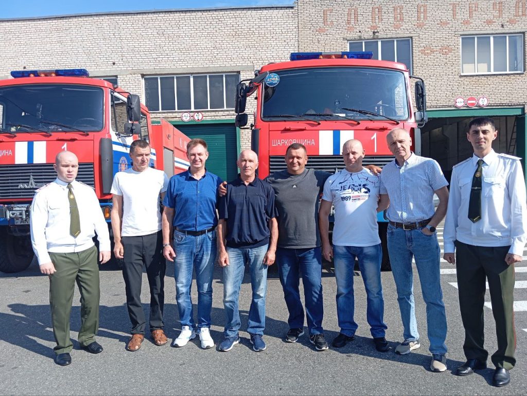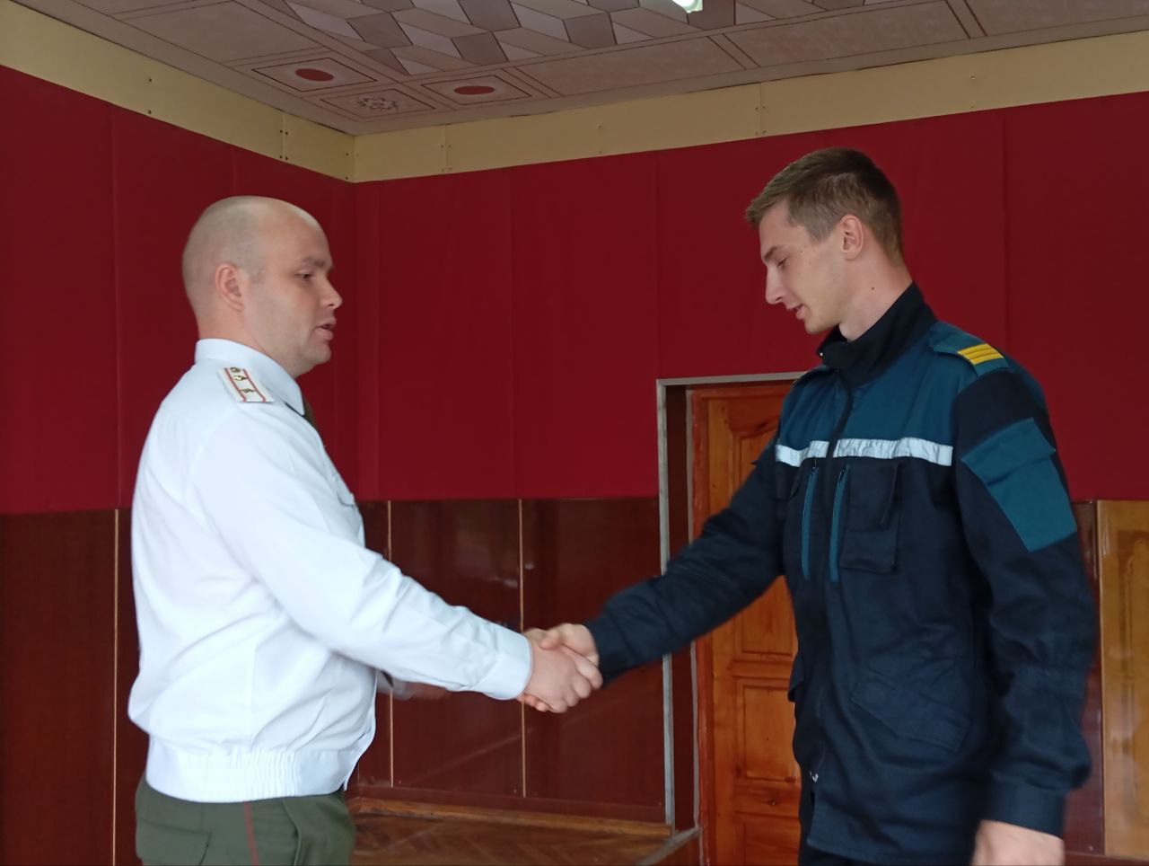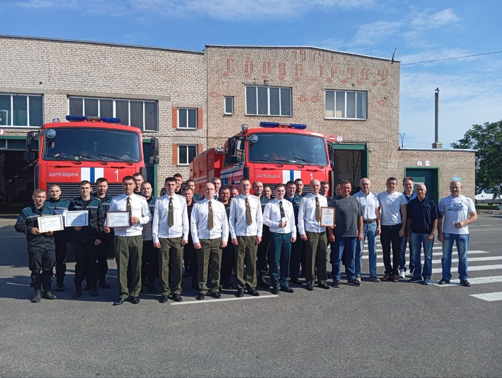 У пажарнай аварыйна-выратавальнай часці #1, якая часова знаходзіцца на базе ДБУ-26, прайшла цырымонія ўзнагароджання з нагоды Дня пажарнай службы. Дзеючых выратавальнікаў і ветэранаў павіншаваў са святам першы намеснік начальніка раённага аддзела па надзвычайных сітуацыях Яўген Катовіч.