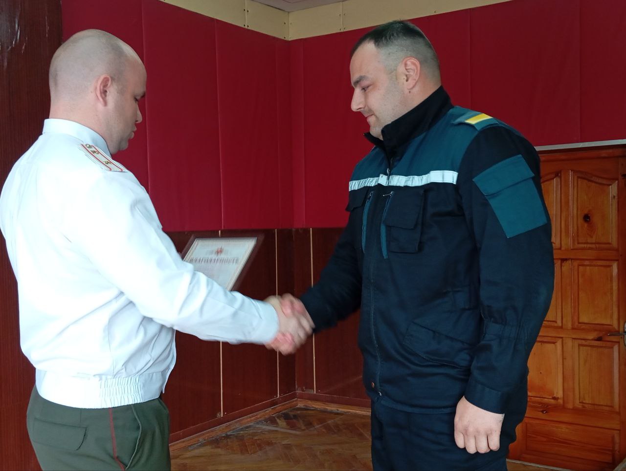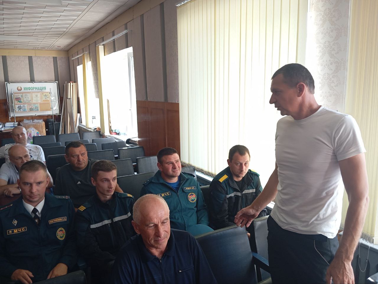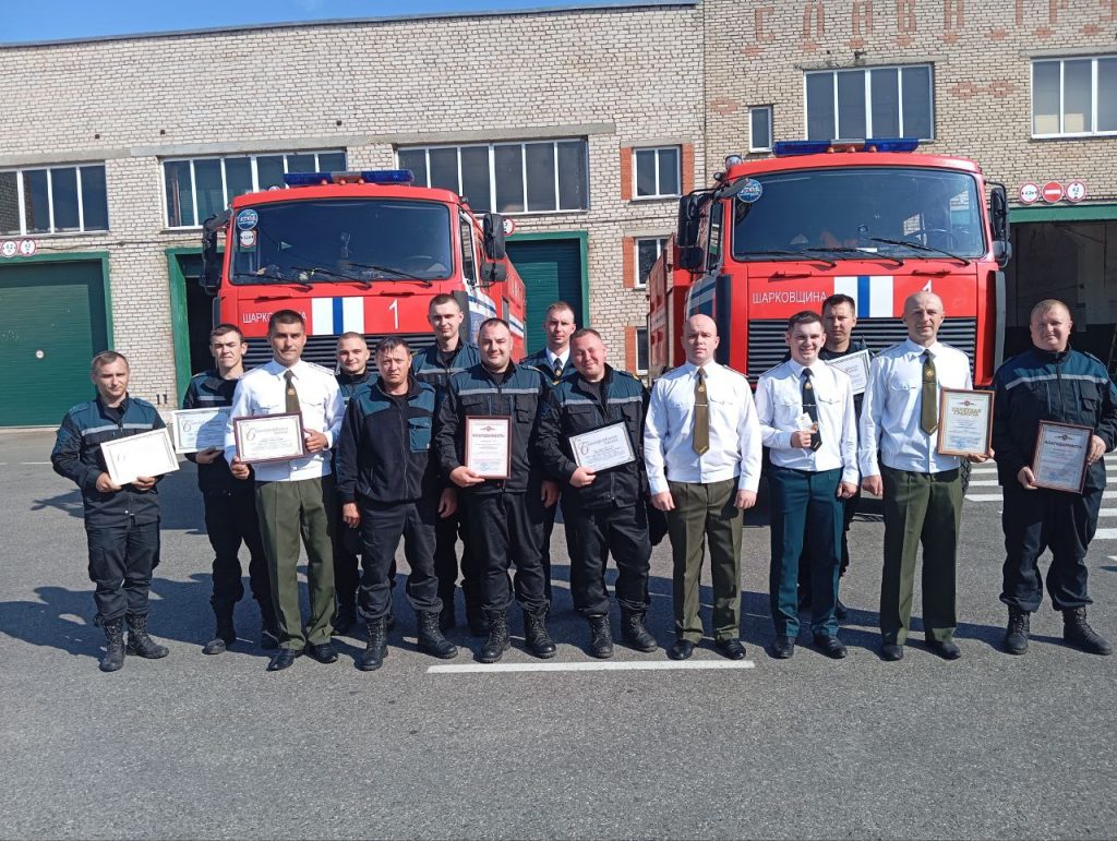 У пажарнай аварыйна-выратавальнай часці #1, якая часова знаходзіцца на базе ДБУ-26, прайшла цырымонія ўзнагароджання з нагоды Дня пажарнай службы. Дзеючых выратавальнікаў і ветэранаў павіншаваў са святам першы намеснік начальніка раённага аддзела па надзвычайных сітуацыях Яўген Катовіч.