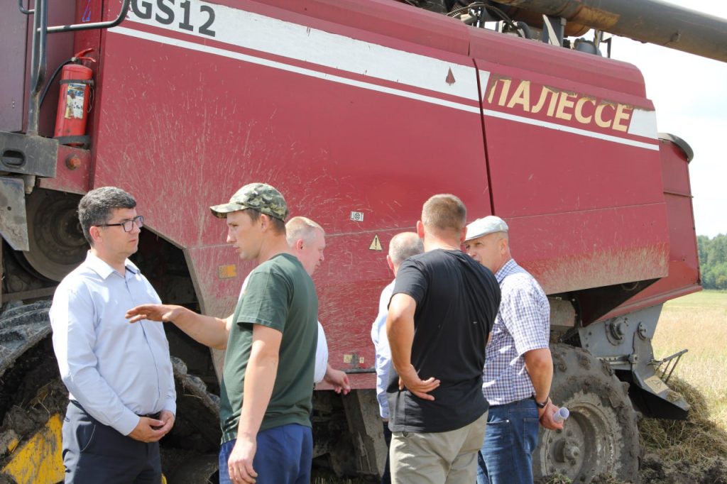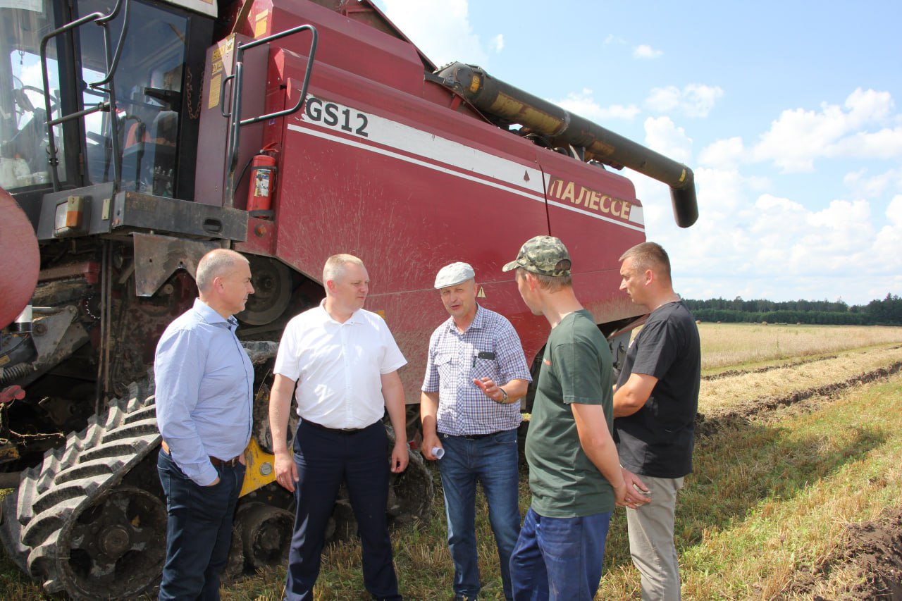 —Сегодня уборка на полях приблизилась к 14 процентам. Урожай неплохой, но, конечно, работаем в экстремальных уловиях, — прокомментировал ход уборочной первый заместитель председателя Витебского облисполкома Сергей Левкович. — Делается всё для того, чтобы в этот непростой год в таких районах, как Шарковщинский, Миорский, Поставский, которые расположены на тяжёлых глинистых почвах и сегодня страдают от переувлажненности, урожай убрать вовремя и без потерь. Для этого устанавливаем спаренные колёса на наши комбайны с переоборудованием их на гусеничный ход. Огромную помощь аграриям оказывает Гомельская область, предоставляет гусеницы на наши комбайны, которые будут работать значительно лучше, чем колёсные, на переувлажненных полях. Необходимые в Шарковщинском районе меры предпринимаются, работа организована, на мой взгляд, неплохо. Работники сельскохозяйственной отрасли тоже делают всё возможное. К уровню прошлого года по темпам уборки мы, конечно, отстаём, но прибавляем в урожае. Если мы и в дальнейшем будем сплочённо и ответственно работать, не теряя ни одной погожей минуты, уверен, справимся с поставленными задачами и уберем урожай вовремя.
