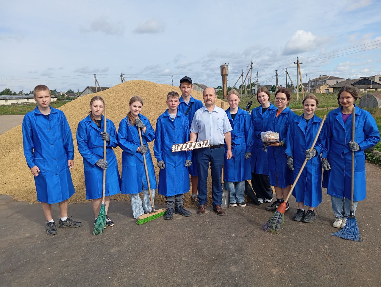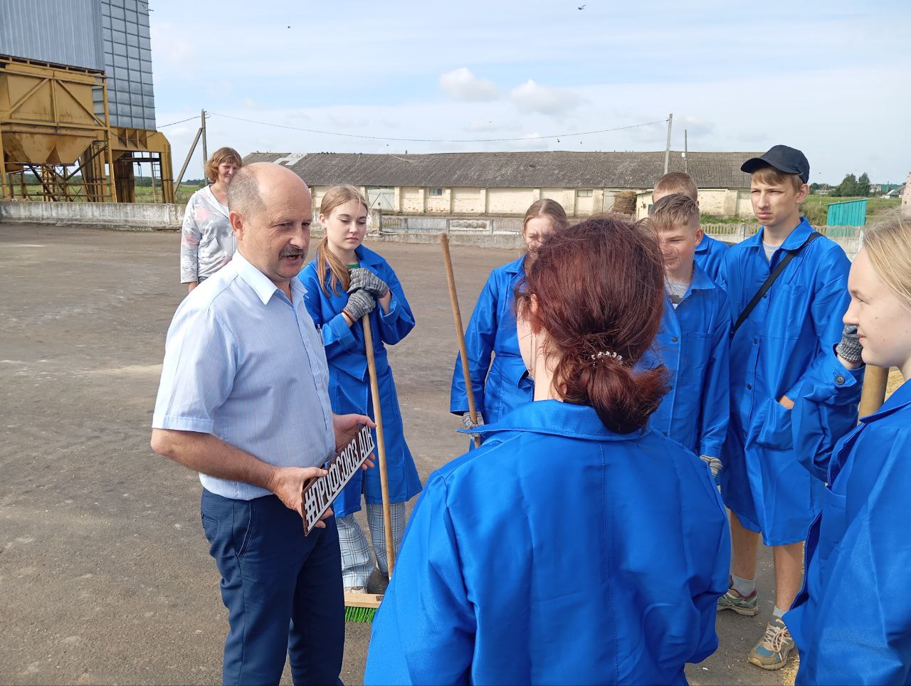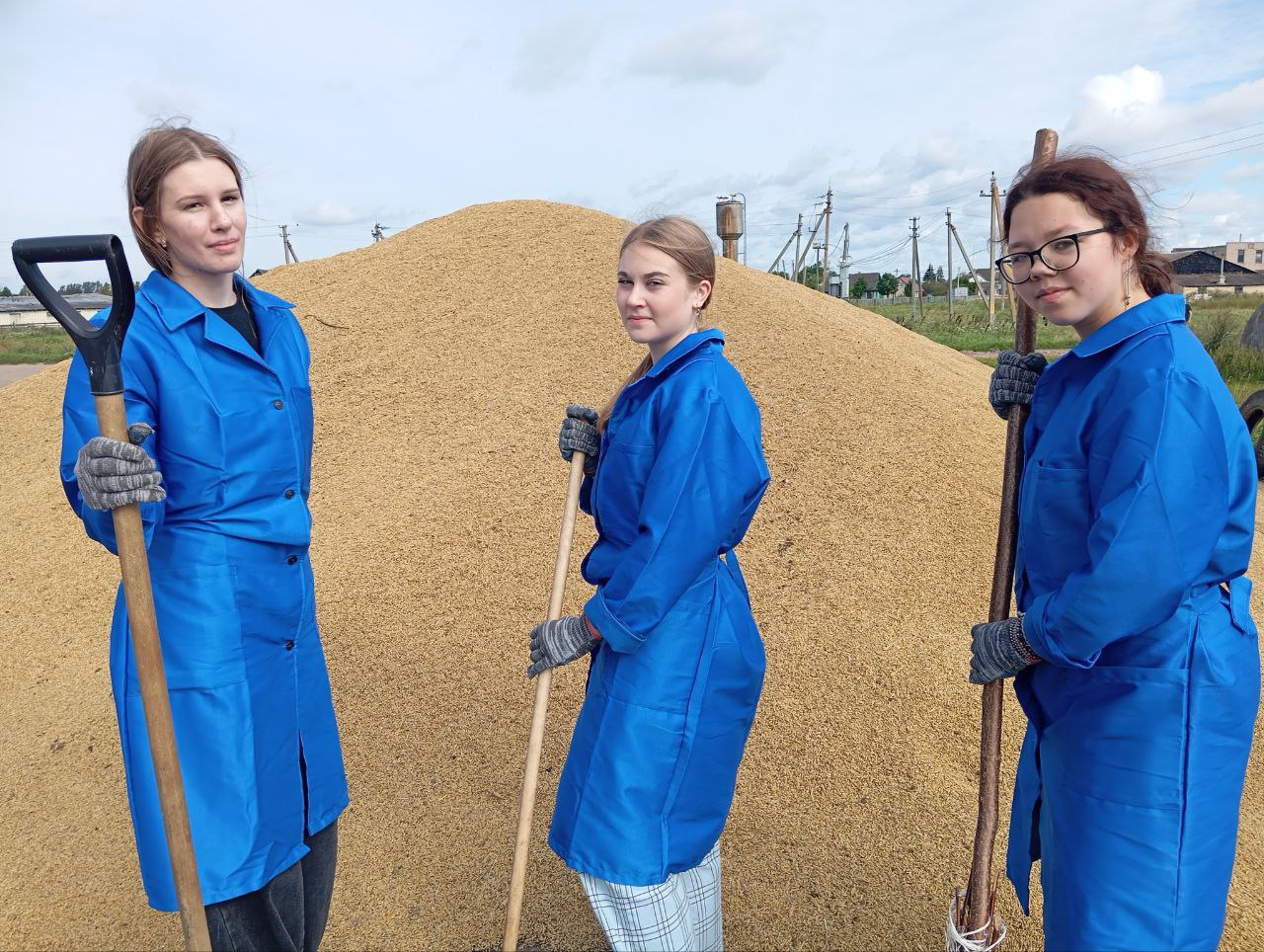 На працягу двух тыдняў будзе працаваць маладзёжны атрад з дзесяці былых дзевяцікласнікаў сярэдняй школы #2 імя Героя Савецкага Саюза Рамана Кудрына на зернесушылцы аддзялення «Рассвет» КУВСП імя Маркава. Юнакі і дзяўчаты падмятаюць тэрыторыю, выдаляюць смецце, дапамагаюць вяскоўцам спраўляцца з працэсам захавання зерня.