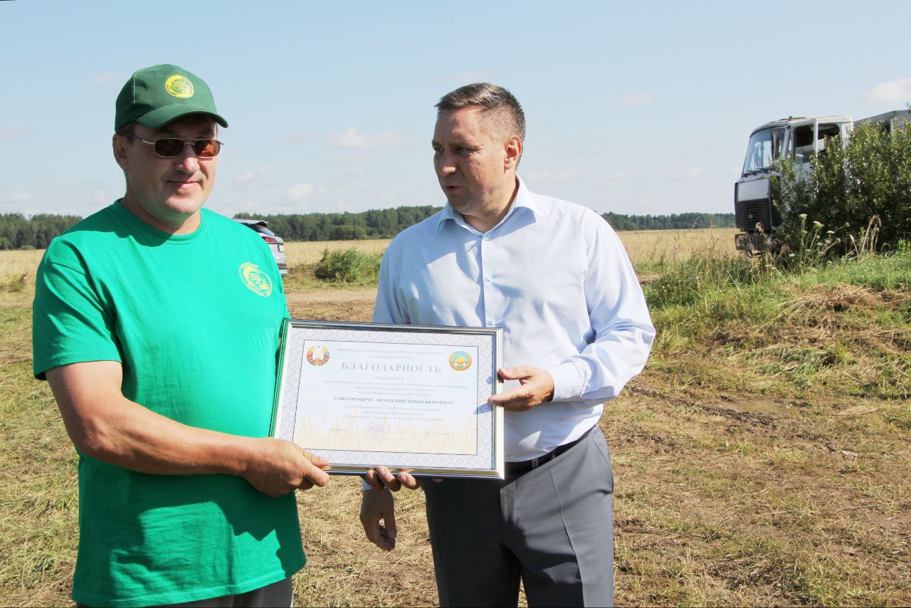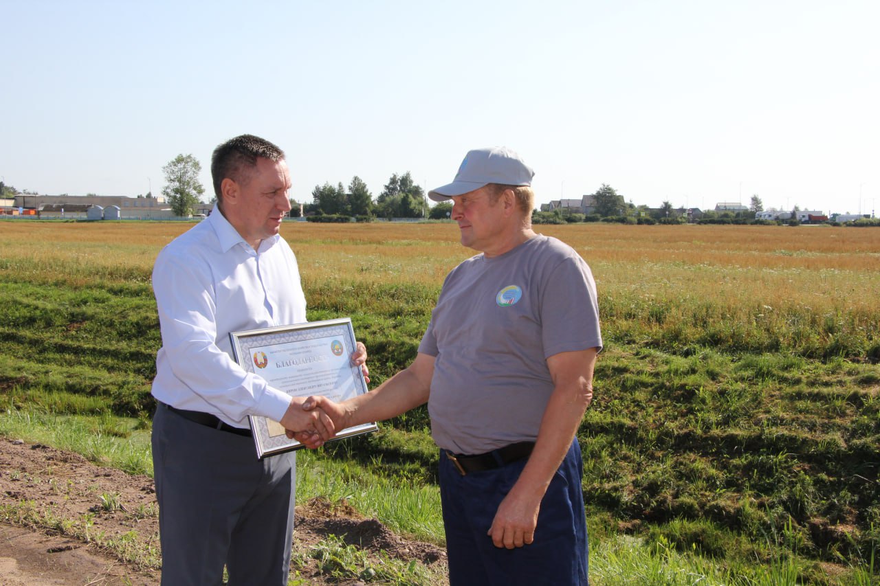 В рамках рабочей поездки министр встретился с сельскими тружениками прямо в поле, поблагодарил их за труд, лучшим вручил заслуженные награды. Благодарности Министерства сельского хозяйства и продовольствия Республики Беларусь объявлены трактористу-машинисту сельскохозяйственного производства ОАО «Шарковщинский агротехсервис» Анатолию Григоровичу и трактористу-машинисту сельскохозяйственного производства КУПСХП имени Маркова Александру Кирею.