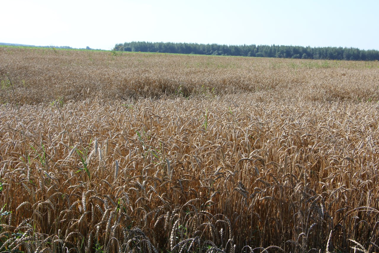 В ОАО «Жвиранка» в урочище «Вишневец» комбайнеры убирают пшеницу. На данном участке убрано 30 га, намолочено 100 тонн, средняя урожайность — 34 ц\га.