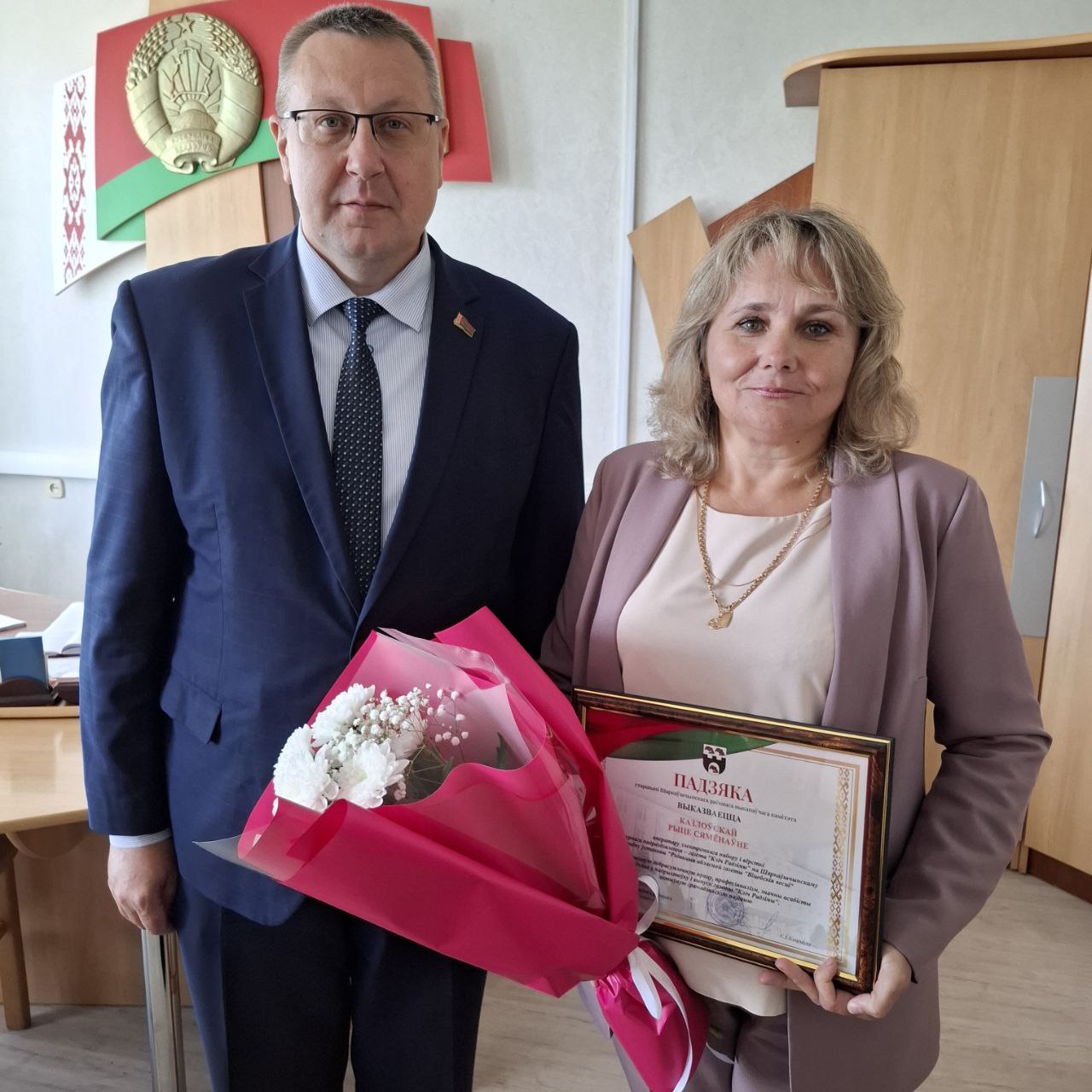 Намеснік старшыні райвыканкама Юрый Васілеўскі ўручыў Падзяку старшыні Шаркаўшчынскага раённага выканаўчага камітэта аператару электроннага набору і вёрсткі структурнага падраздзялення — газета «Кліч Радзімы» па Шаркаўшчынскаму раёну ўстановы «Рэдакцыя абласной газеты «Віцебскія весці» за шматгадовую добрасумленную працу, прафесіяналізм, значны асабісты ўклад у падрыхтоўку і выпуск газеты «Кліч Радзімы», актыўную грамадзянскую пазіцыю Рыце Казлоўскай