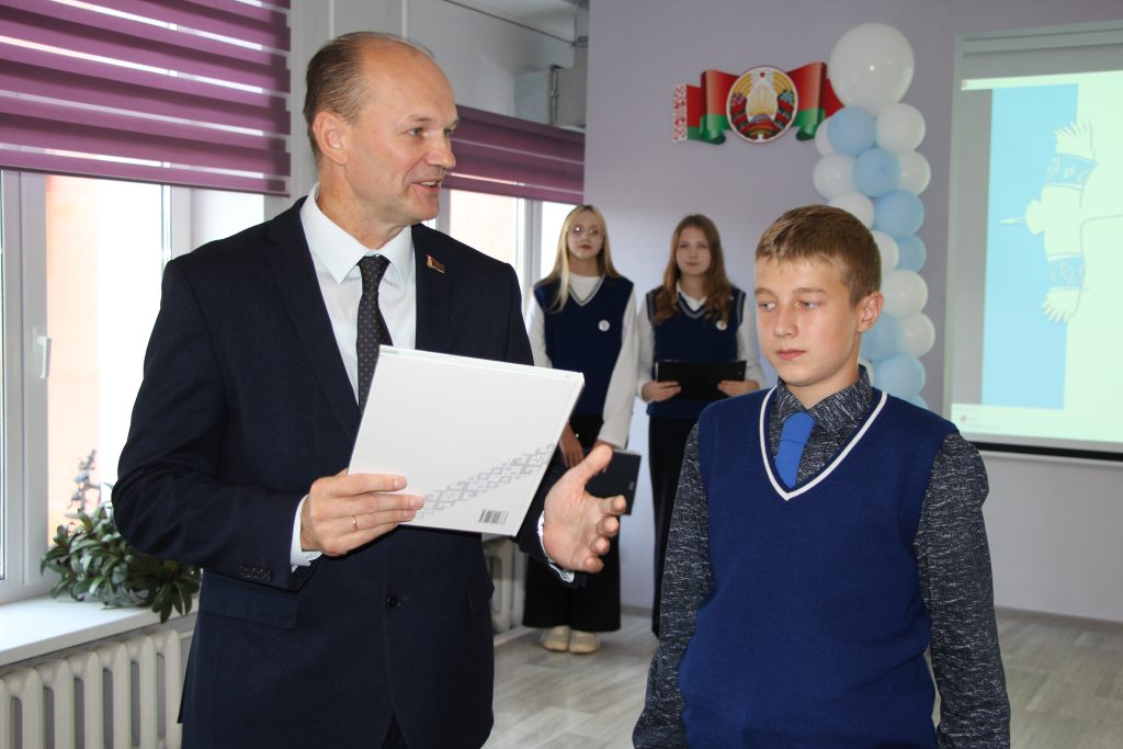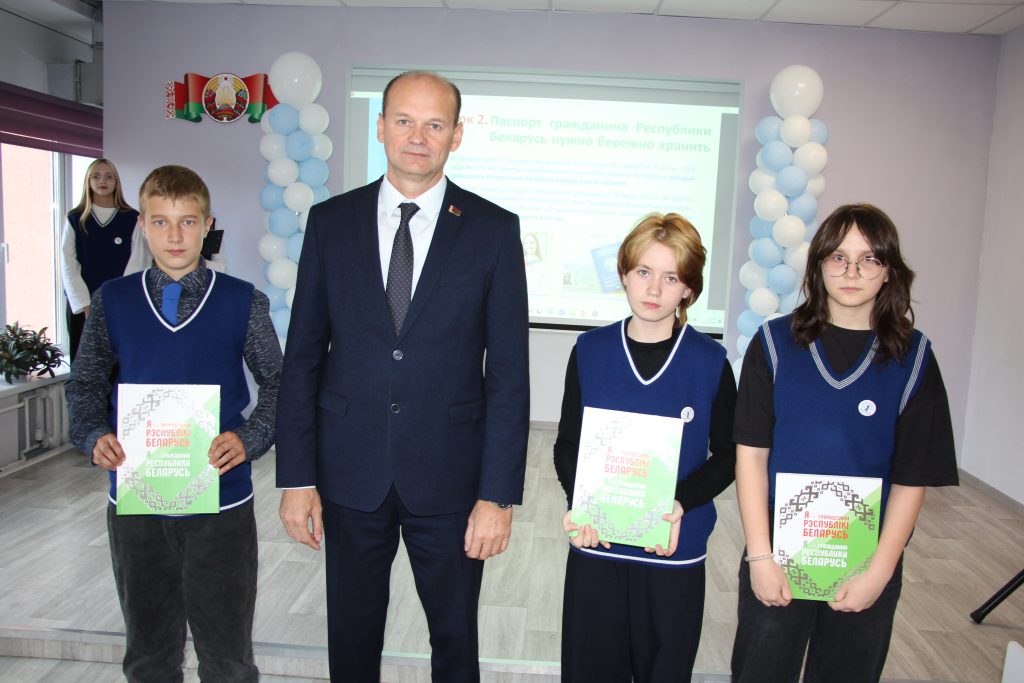 Почетным гостем мероприятия стал председатель Шарковщинского районного Совета депутатов Сергей Орешков. В торжественной атмосфере он вручил ребятам, которым исполнилось 14 лет, книги «Я — гражданин Республики Беларусь!». Это яркое и содержательное издание представляет собой иллюстрированный альбом, посвященный истории, государственному устройству, природному богатству, национальным обычаям и будущему нашей страны.