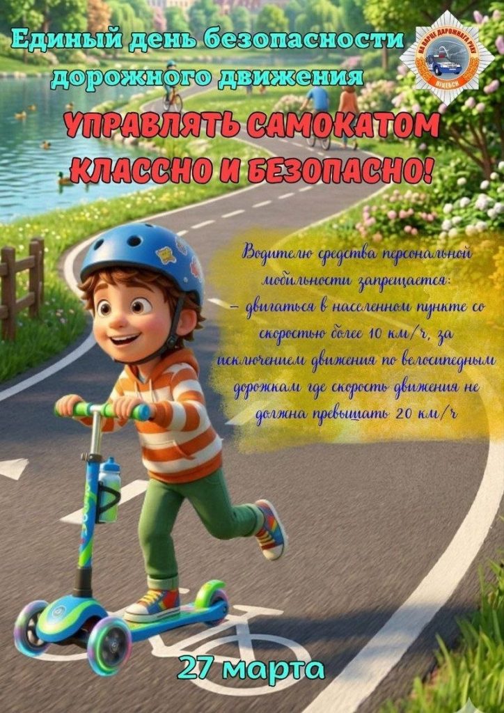 Единый день безопасности дорожного движения под девизом «Управлять самокатом классно и безопасно!» проведёт ГАИ Шарковщинского РОВД 27 марта 2026 года.