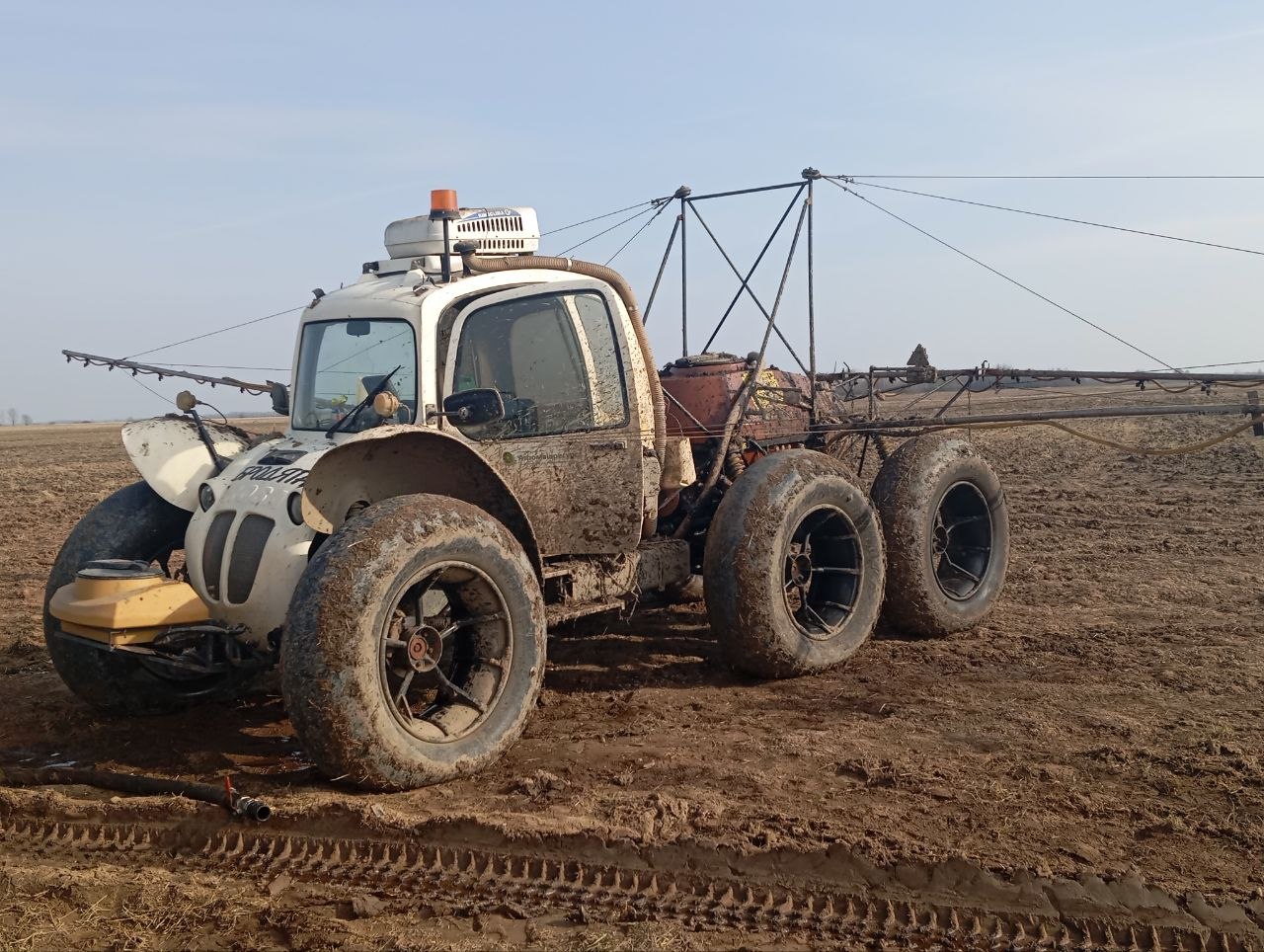 После заката солнца возвращаются механизаторы ОАО «Агротехсервис» с полей домой. Они ведут важнейший агроприем — подкормку озимых культур карбамидо-аммиачной смесью.