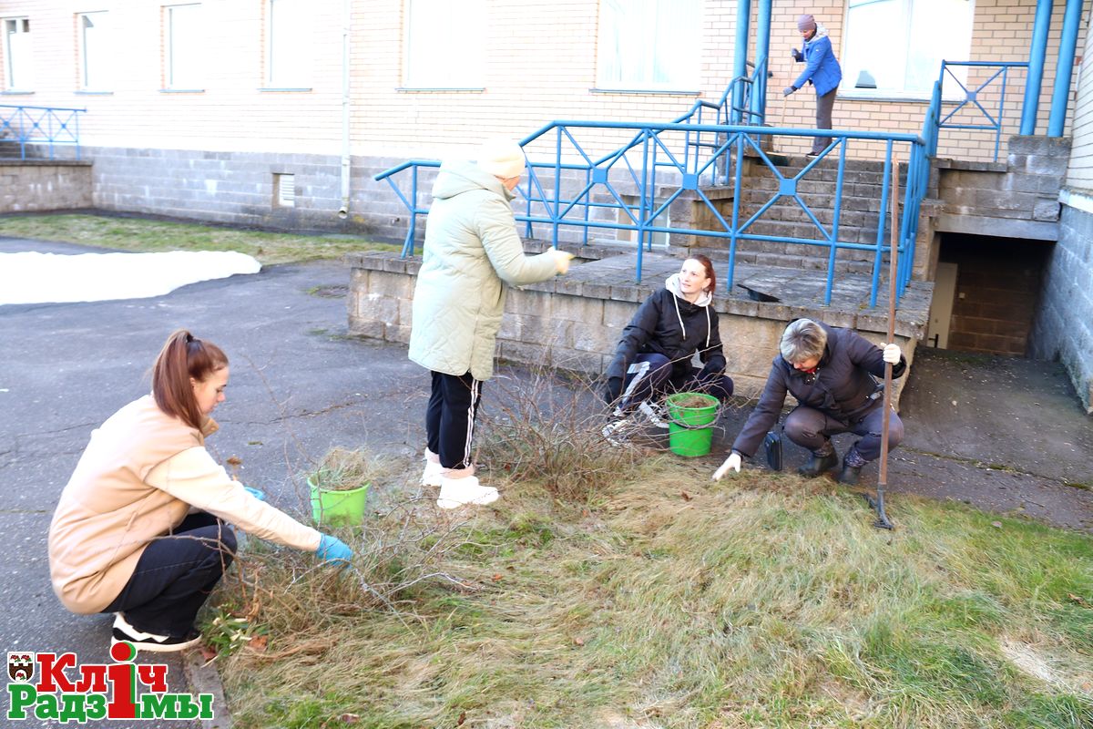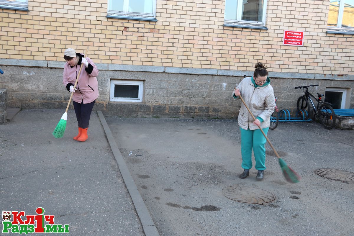 Сегодня медики — врачи, медсёстры, санитары и административный персонал — обменяли белые халаты на рабочие перчатки и вышли на районный субботник. Они убирали прошлогоднюю листву, подметали дорожки, наводили порядок.