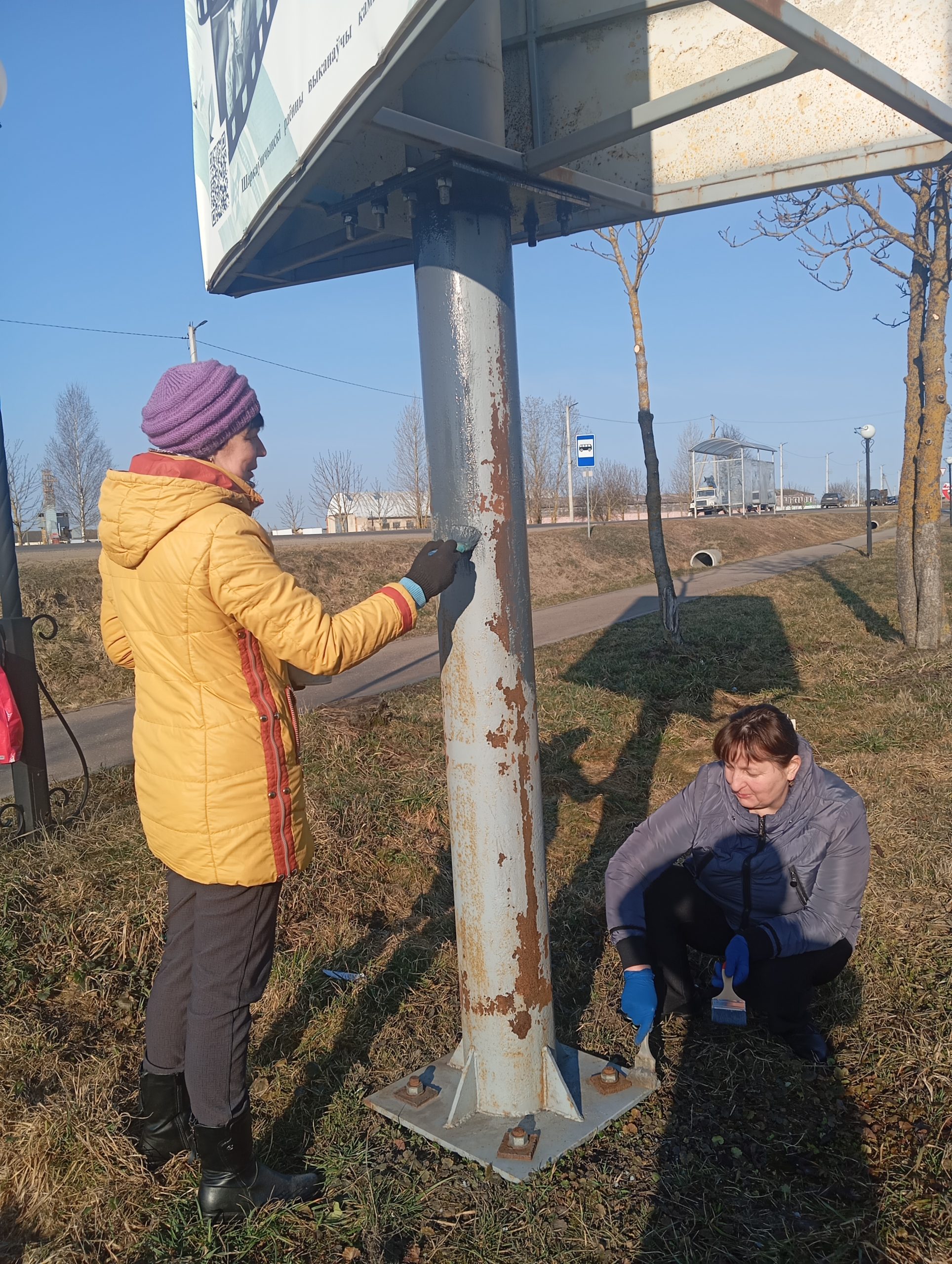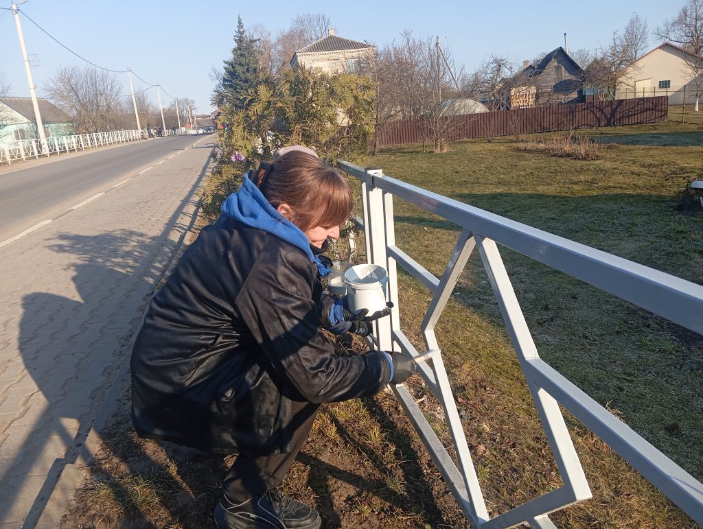 Очисткой и покраской забора, архитктурных конструкций по аллее земляков, мостика, очисткой тротуаров и сбором мусора по улице Красноармейской занимались работники отдела по образованию райисполкома, СШ № 2 имени Героя Советского Союза Романа Степановича Кудрина, детского сада № 5.