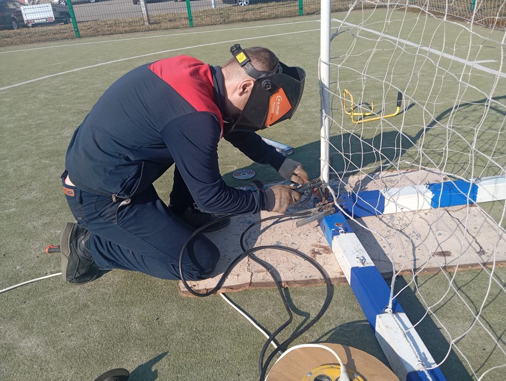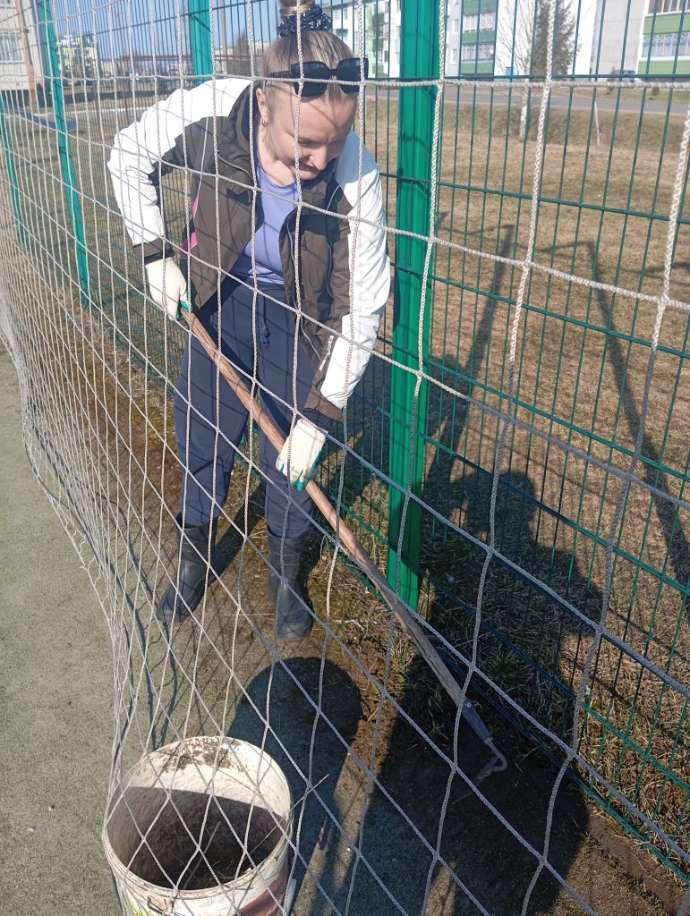 В этот субботний погожий день нашлось дело и для специалистов детско-юношеской спортивной школы и физкультурно-спортивного клуба «Шарковщина». Они занимались благоустройством спортивной площадки «Родная сторона».
