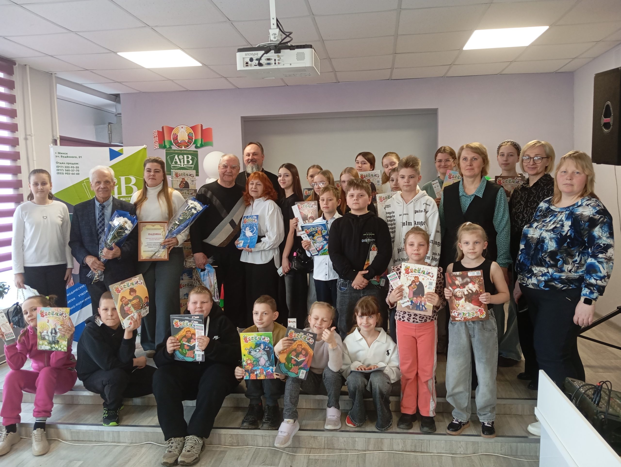 Сустрэча прайшла ва ўтульнай актавай зале сярэдняй школы № 1 райцэнтра. Дзіцячыя гарэзлівыя вочы з вялікай цікавасцю разглядалі мноства кніг, аўтары якіх прысутнічалі побач, а таксама нумары часопіса «Вясёлка». Справа ў тым, што Уладзімір Ліпскі і Леанід Улашчанка з’яўляюцца членамі рэдкалегіі гэтага друкаванага выдання, на старонках якога публікуюцца творы дзіцячых пісьменнікаў.