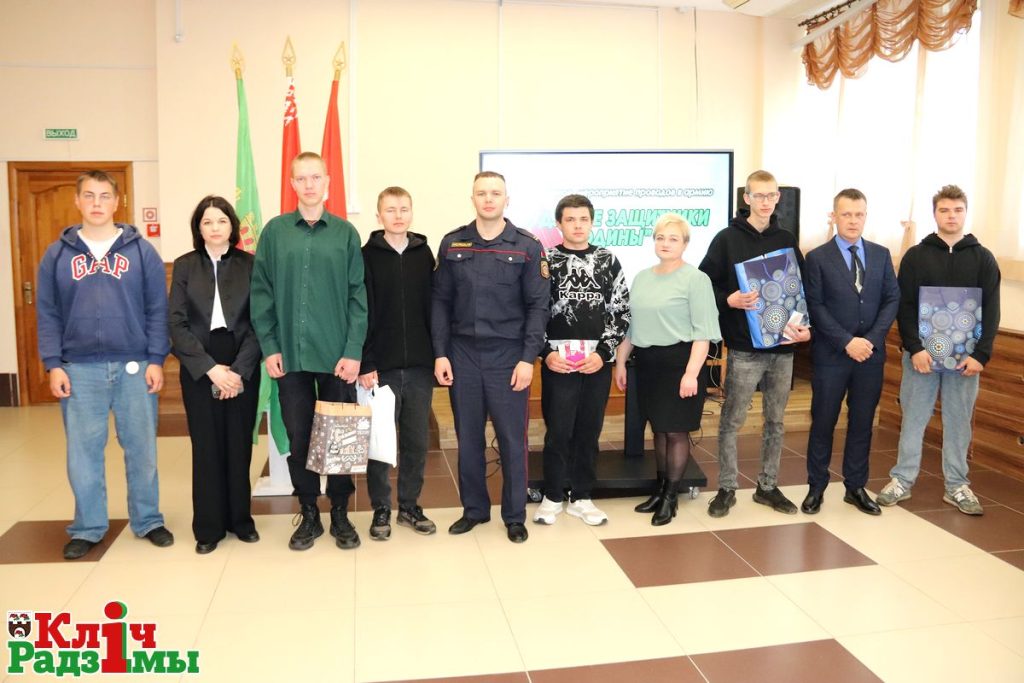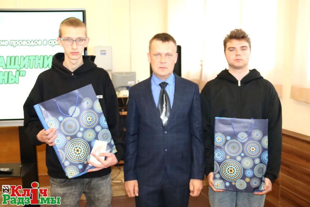 Призывники Арсений Колбасич, Евгений Пезик, Максим Малявко, Владислав Захарьев, Алексей Рогачевский и Дмитрий Жуков получили памятные подарки от руководства организаций, в которых трудились до призыва.