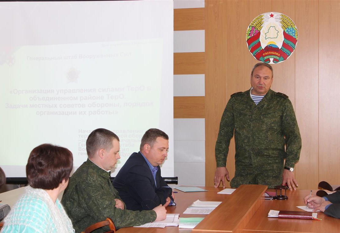 В рамках подготовки к совместному стратегическому учению Вооруженных сил Республики Беларусь и Российской Федерации «Запад 2017» в середине мая состоялся учебный семинар в районном исполнительном комитете под руководством начальника управления территориальной обороны — заместителя начальника Генерального штаба Вооруженных сил генерал-майора С. Г. Дудко. Он рассказал членам совета обороны района о роли этой структуры, обозначил задачи и порядок организации работы, нацелил на плодотворную работу по подготовке к совместному стратегическому учению.