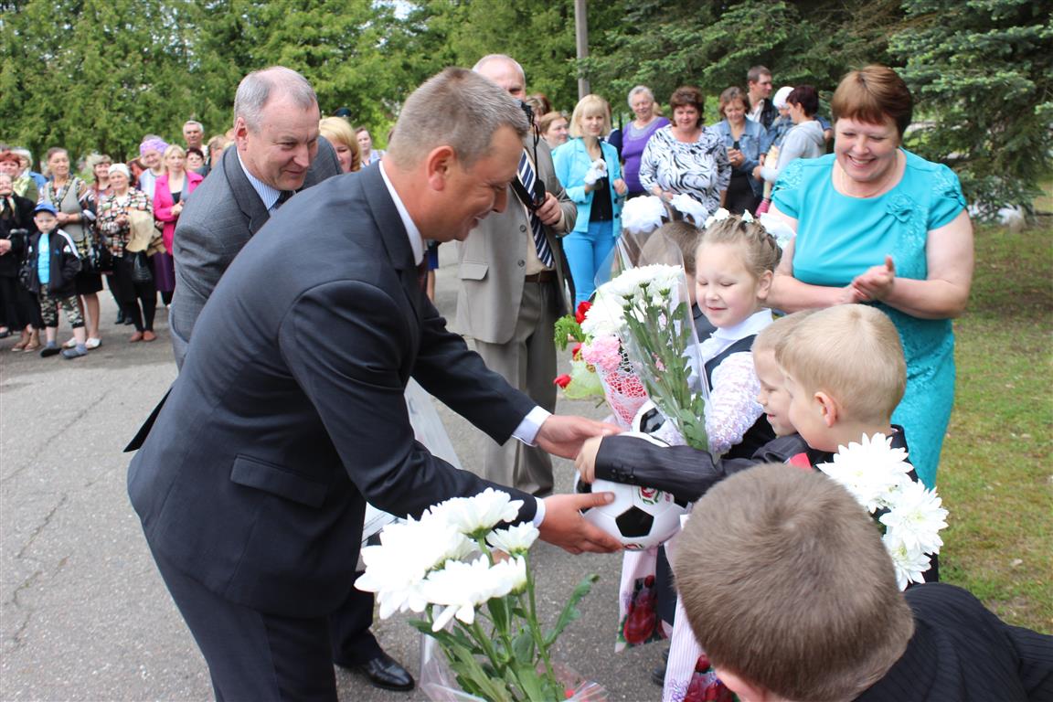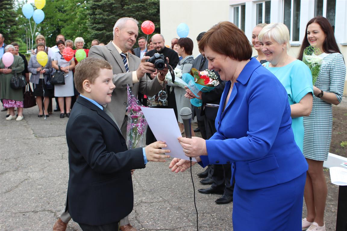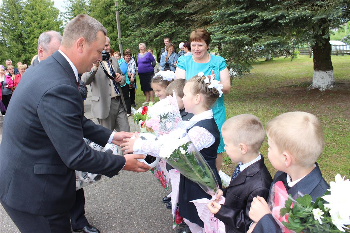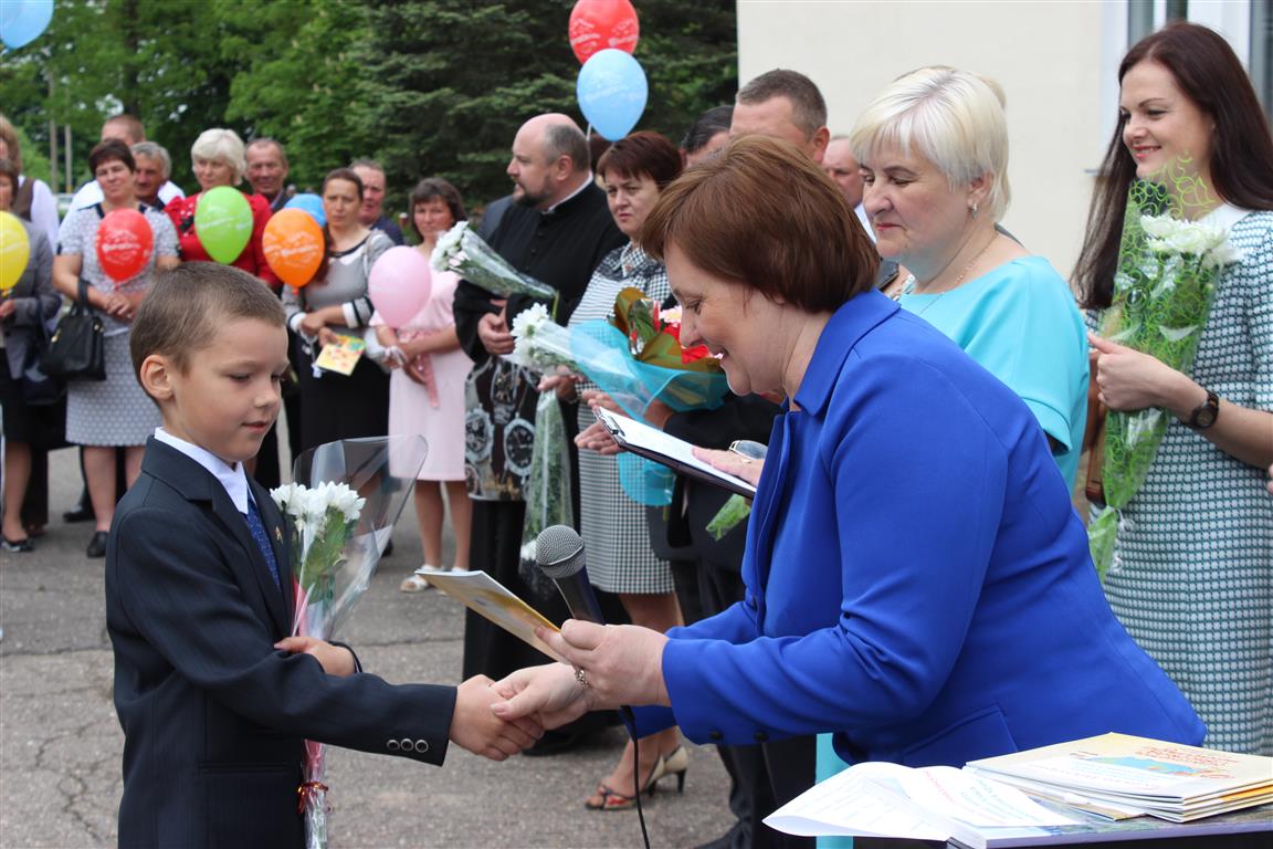 Поздравили ребят с окончанием учебного года председатель районного исполнительного комитета Дмитрий Михайлович Ломако, начальник отдела образования, спорта и туризма райисполкома Николай Николаевич Рубацкий, его заместитель Наталья Анатольевна Орешкова, директор ОАО «Княж» Виктор Владимирович Кривко, заместитель генерального директора унитарного предприятия «Кока-Кола Бевриджиз Белоруссия» Анжелика Мельникова, ксендз Ян Пугачев, протоиерей Петр Барановский.
