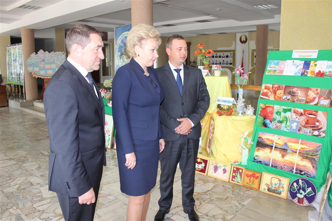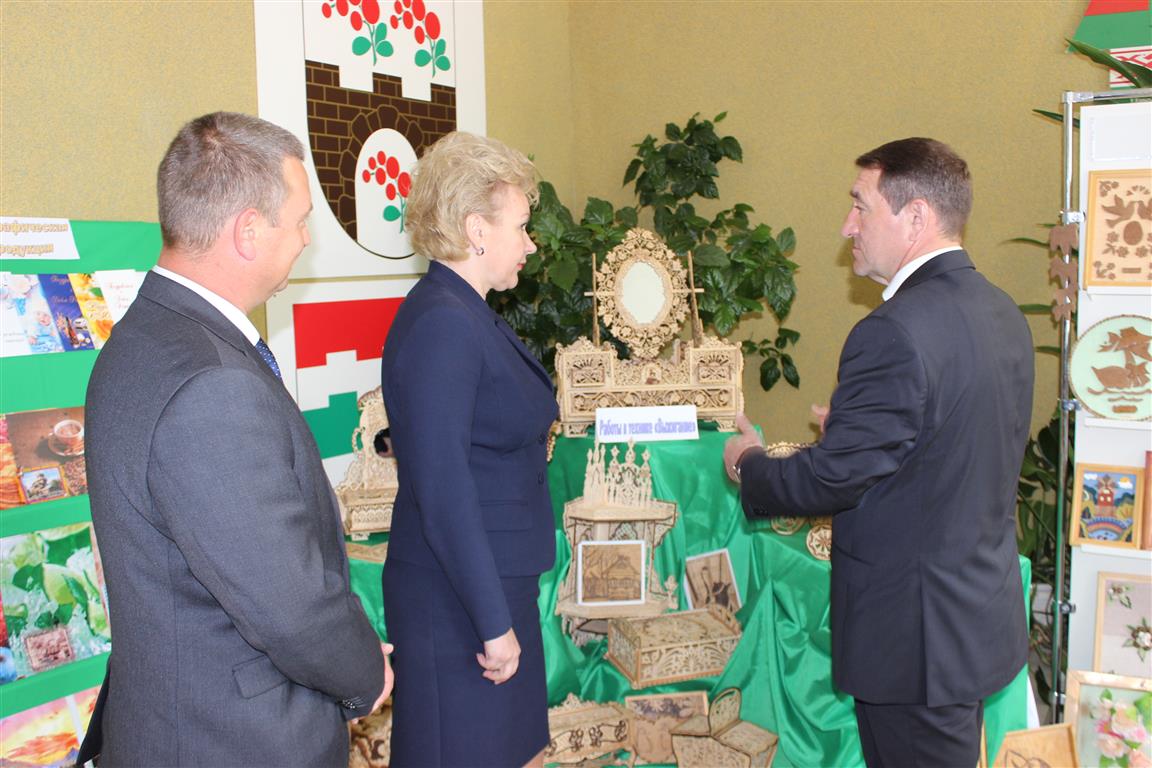 Пасля пасяджэння міністр працы і сацыяльнай абароны Ірына Анатольеўна Касцевіч разам са старшынёй камітэта па працы, занятасці і сацыяльнай абароне Віцебскага аблвыканкама Аляксандрам Мікалаевічам Хрыстафоравым і старшынёй Шаркаўшчынскага райвыканкама Дзмітрыем Міхайлавічам Ламака наведалі выставу творчых работ удзельнікаў гурткоў аддзялення дзённага знаходжання інвалідаў тэрытарыльнага Цэнтра сацыяльнага абслугоўвання насельніцтва, якая была разгорнута ў фае райвыканкама.