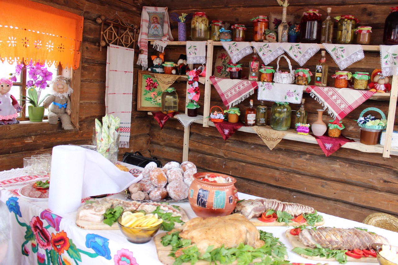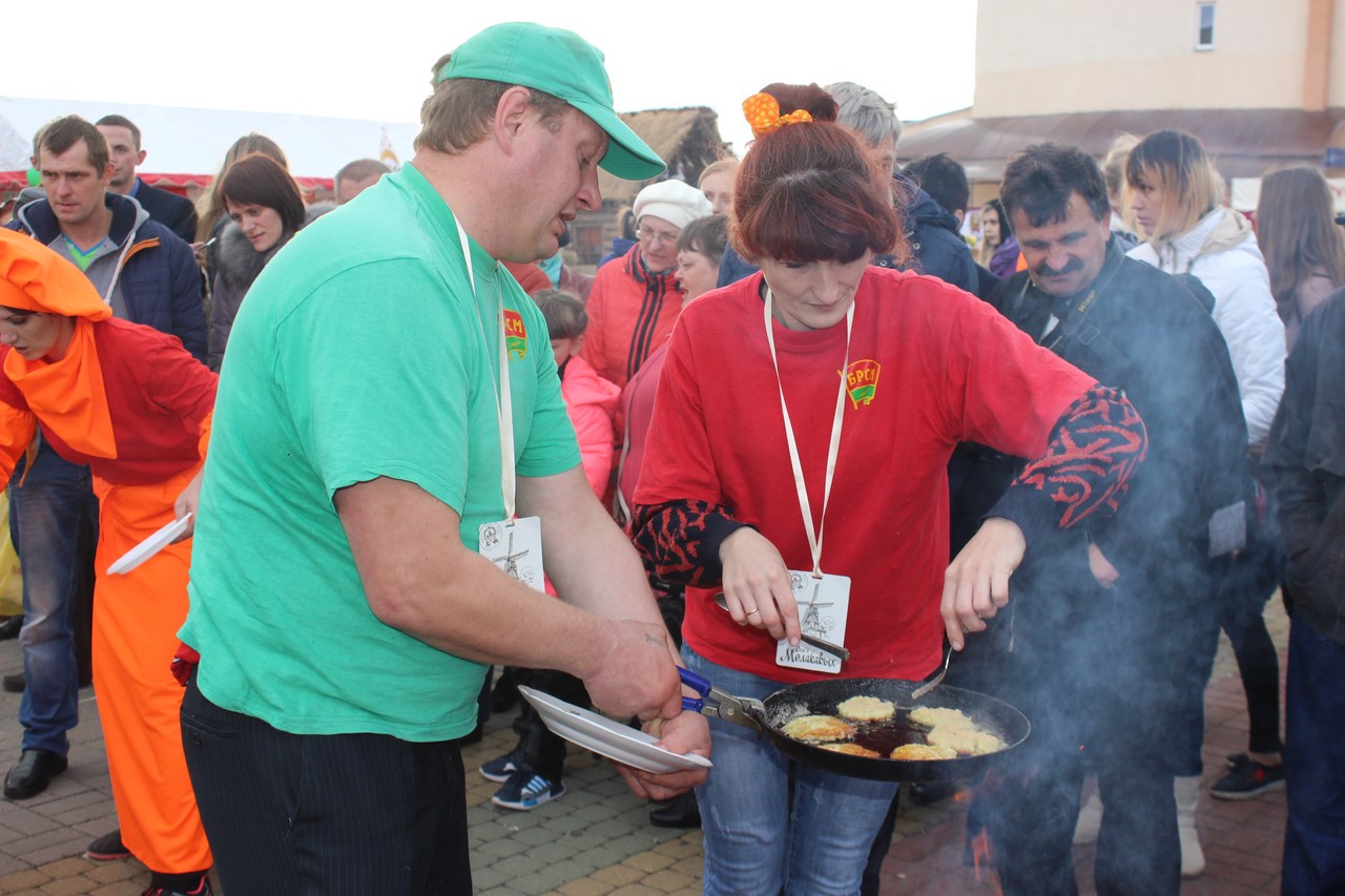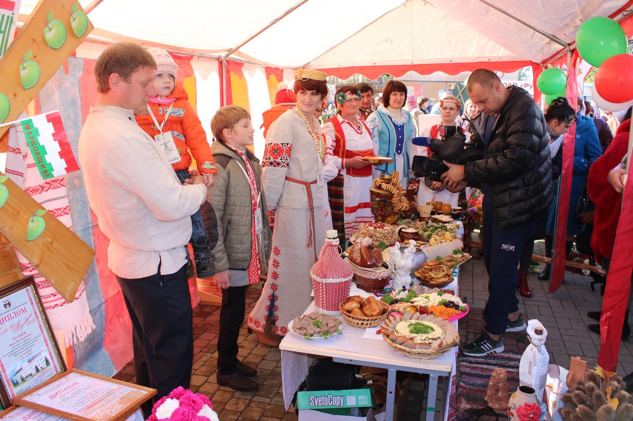 Танцы, песни и, конечно же, угощения. Все варенья и соленья с личных подворий. Но застолье не для того, чтобы задобрить жюри. Это конкурсная часть мероприятия. Так хозяйки показывают свои умения в конкурсе «Выстава дасягненняў сямейнай гаспадаркі».