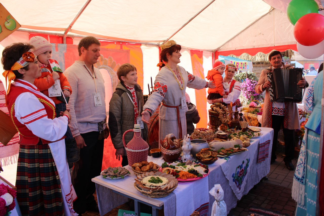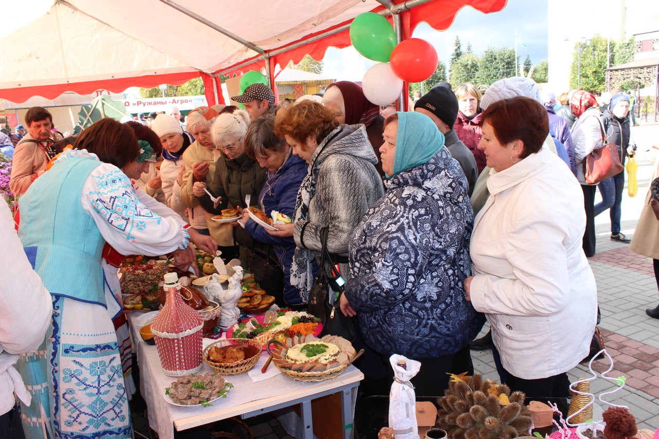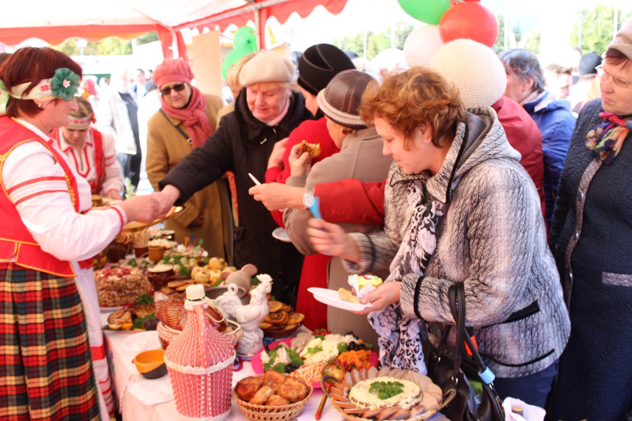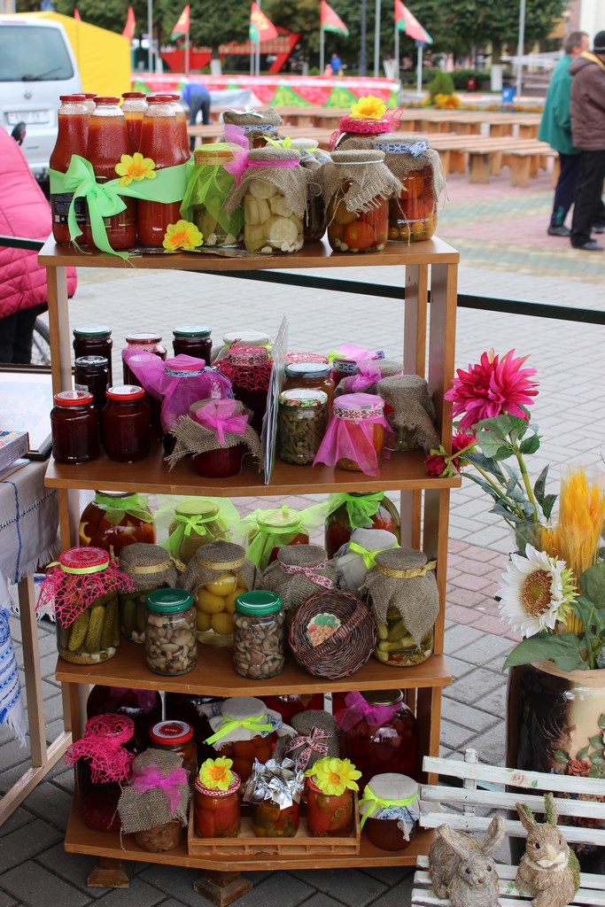 Танцы, песни и, конечно же, угощения. Все варенья и соленья с личных подворий. Но застолье не для того, чтобы задобрить жюри. Это конкурсная часть мероприятия. Так хозяйки показывают свои умения в конкурсе «Выстава дасягненняў сямейнай гаспадаркі».