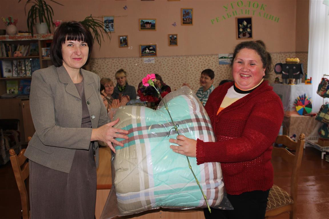 В канун Дня матери председатель районной организации общественного объединения «Белорусский фонд мира» Инна Марьяновна Шинкевич приехала в отделение дневного пребывания для инвалидов, чтобы на рабочем месте поздравить и вручить подарок руководителю кружка отделения Надежде Ивановне Ивановой. Отметим, что Надежда Ивановна с 2008 года безвозмездно работает председателем Шарковщинской первичной организации ОО «БелТИЗ». Она сама является инвалидом 3-й группы, воспитывает дочь.